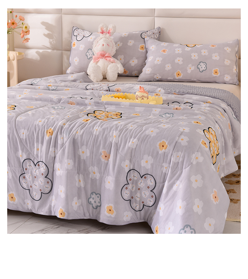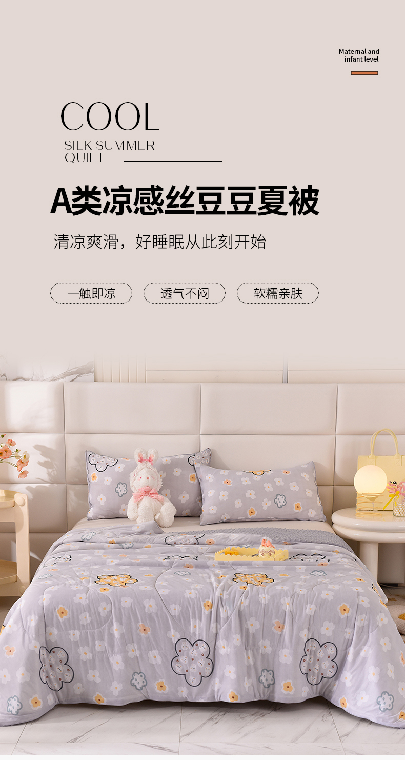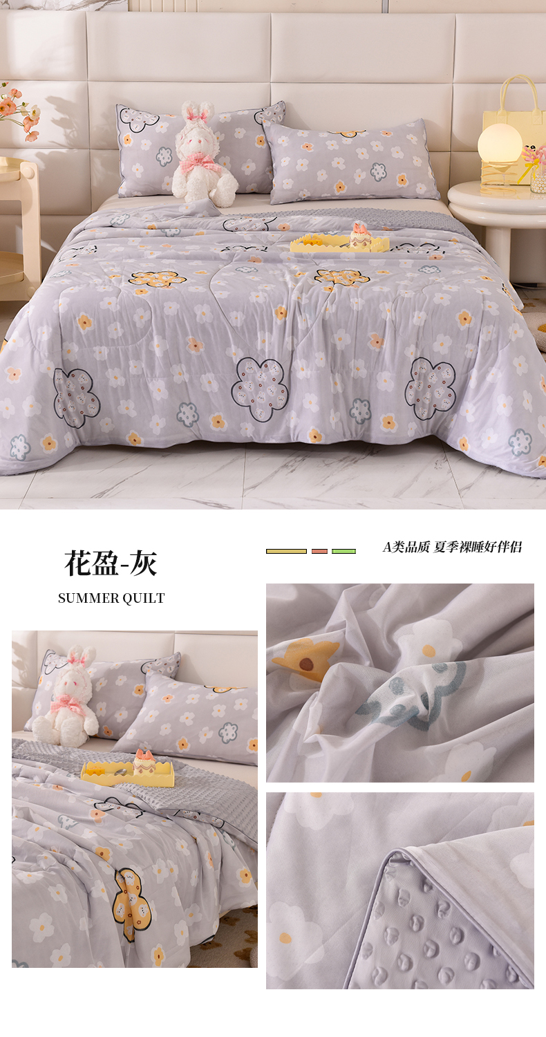 商品名称:经年 2025新款A类凉感丝豆豆夏被 花盈-灰