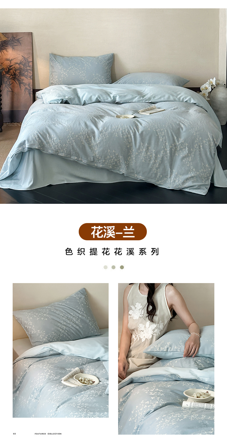 当前位置: 91家纺网 > 商品网购 > 床品套件 > 四件套 > 提花四件套 > 例外Home 2025新款60s全棉纯棉大提花四件套-花溪 花溪-兰
