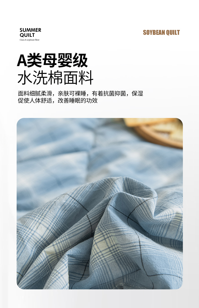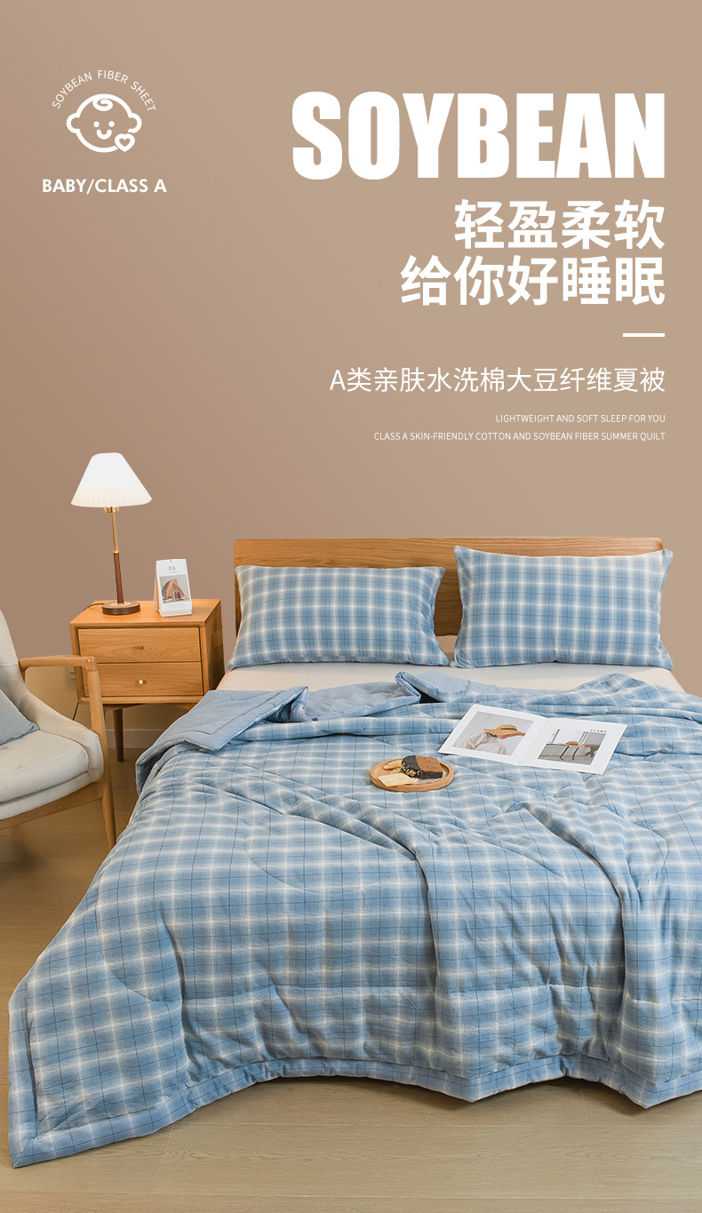 商品名称:慕木家纺 2025春夏新款A类亲肤水洗棉大豆纤维夏被夏凉被空调被 午后时光-兰
