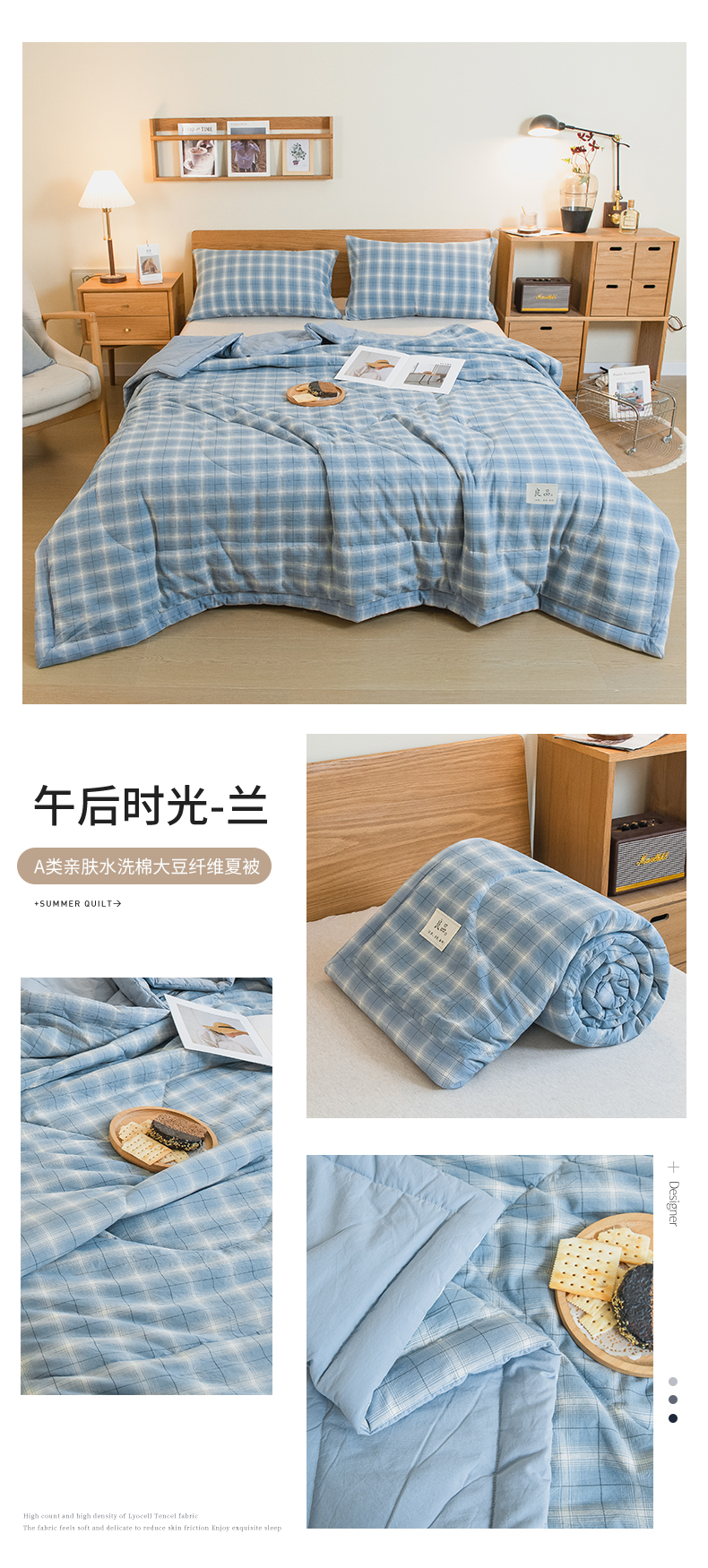 慕木家纺 2025春夏新款A类亲肤水洗棉大豆纤维夏被夏凉被空调被 午后时光-兰
