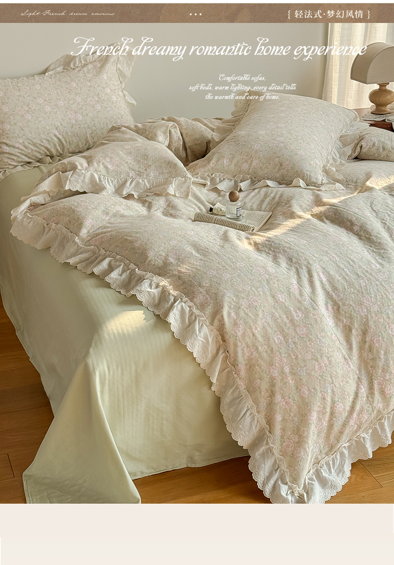 (总)塔塔 2025新款法式田园全棉针织棉花边印花夏被,花奈,假日,洛可可,漫恋,木槿,浅汐,小樱桃,洋兰