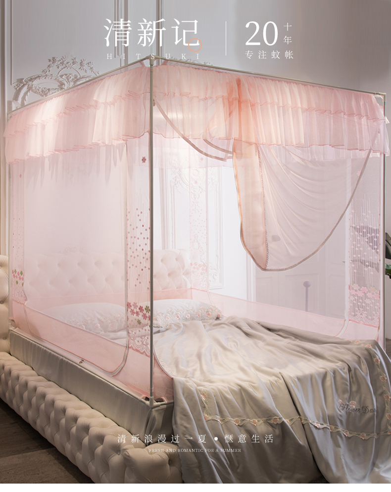 商品名称:飞轮海蚊帐 2025新款全底回底蚊帐方顶防摔坐床蚊帐-Z57风格二 嫩粉
