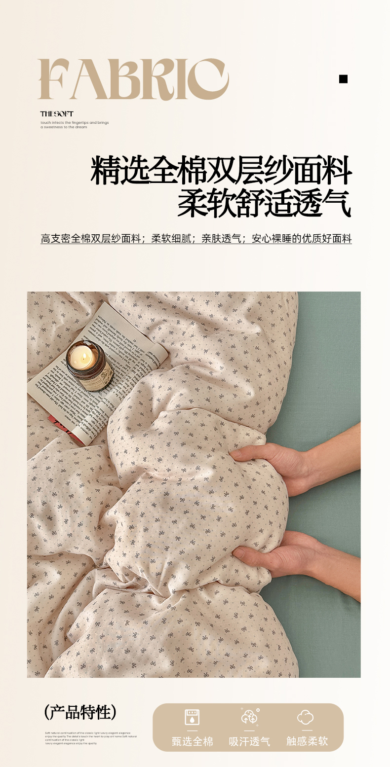 当前位置: 91家纺网 > 商品网购 > 床品套件 > 四件套 > 全棉普通四件套 > 吉象2025新款全棉双层纱四件套 蝶花坊-米