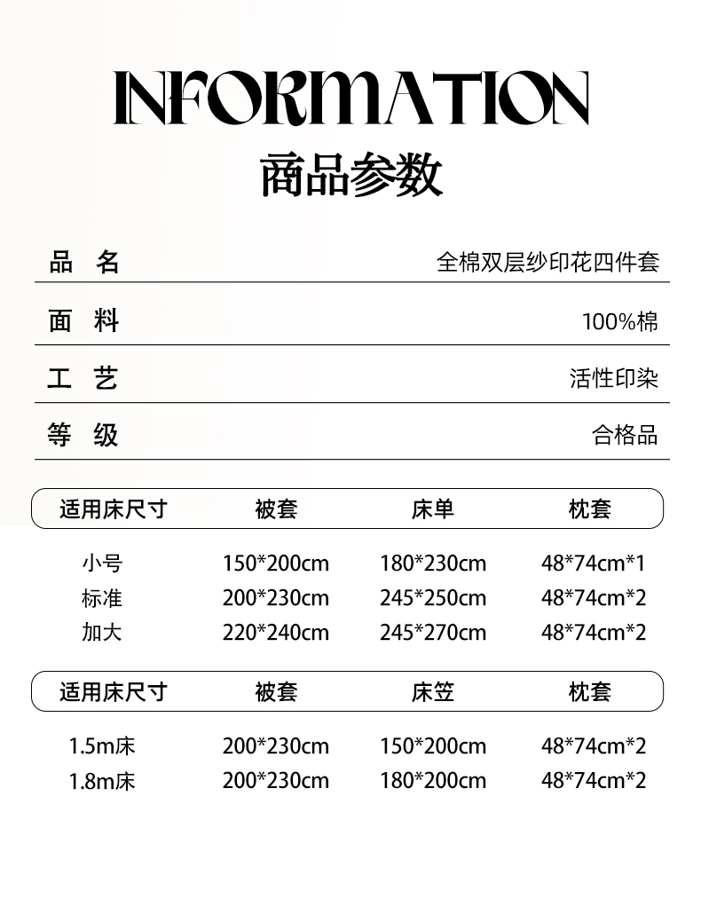 1.5m床笠款四件套 | ¥140.00 |