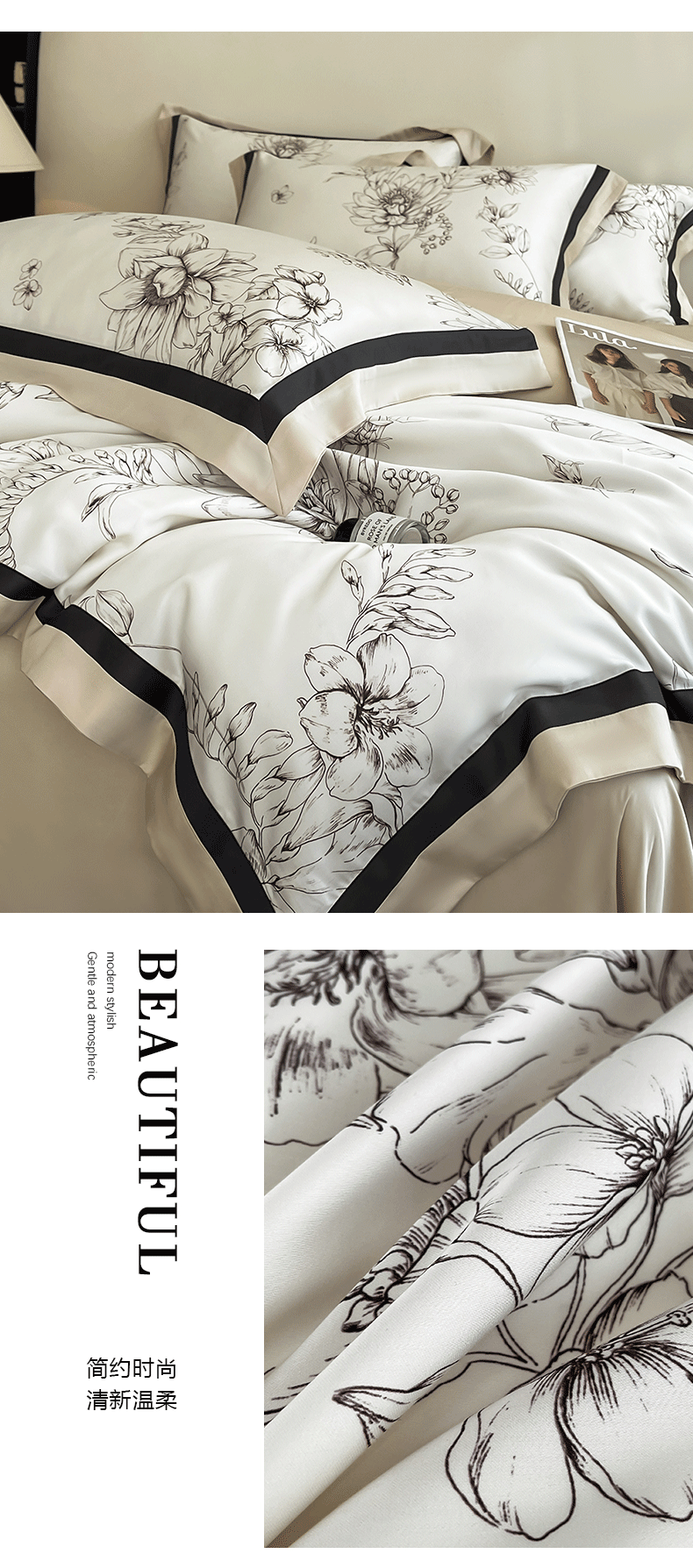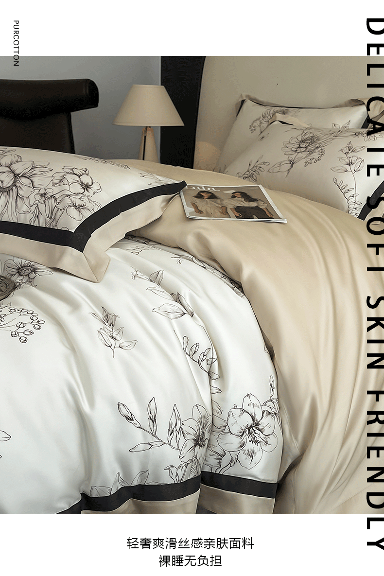 商品名称:618家纺 2025新款A类60S100支兰精天丝数码印花四件套 陌上花开