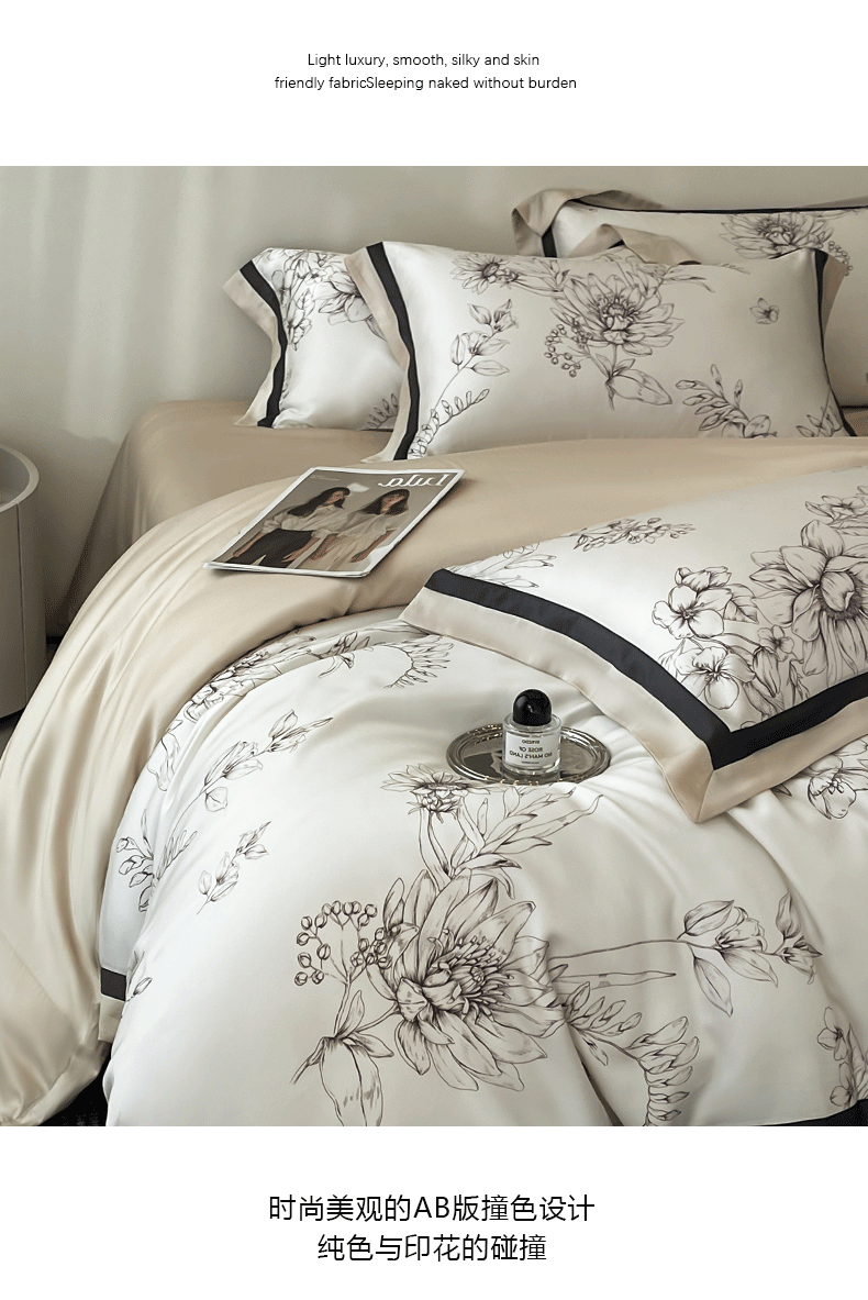 618家纺 2025新款A类60S100支兰精天丝数码印花四件套 陌上花开