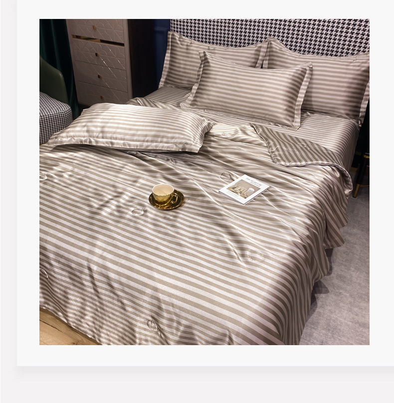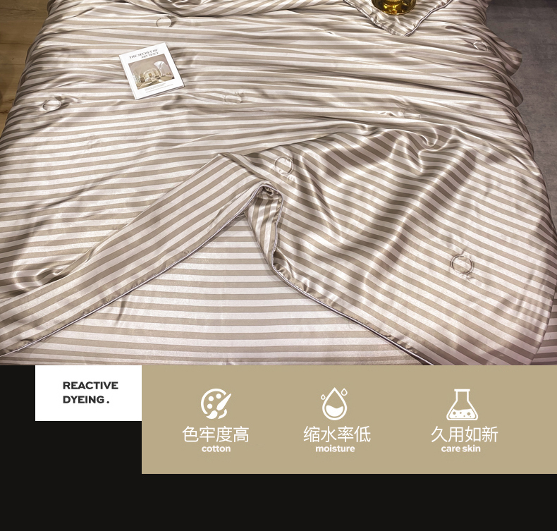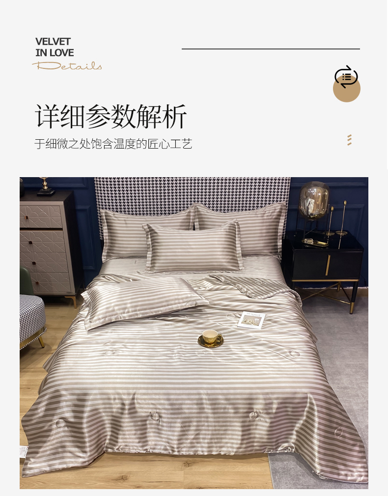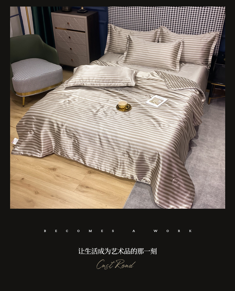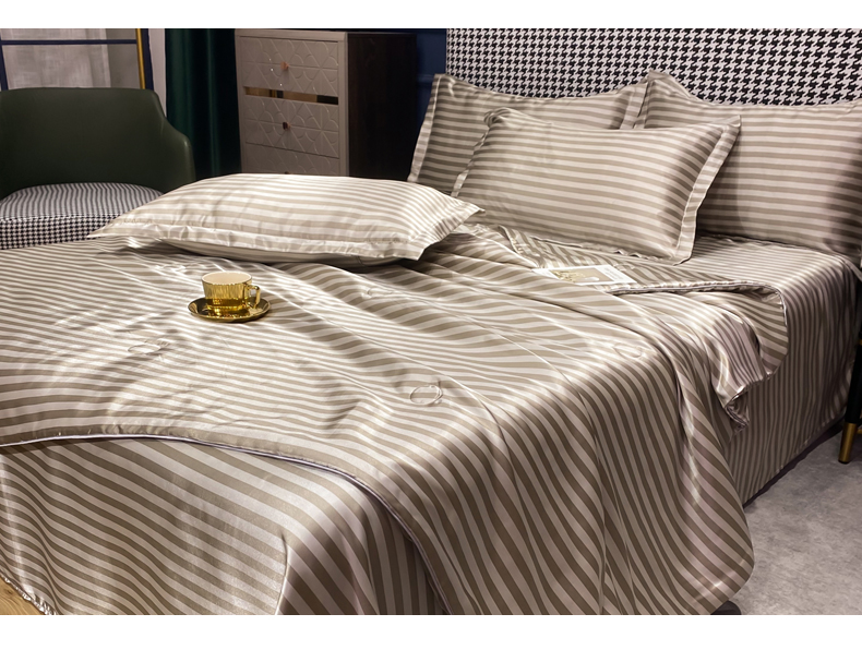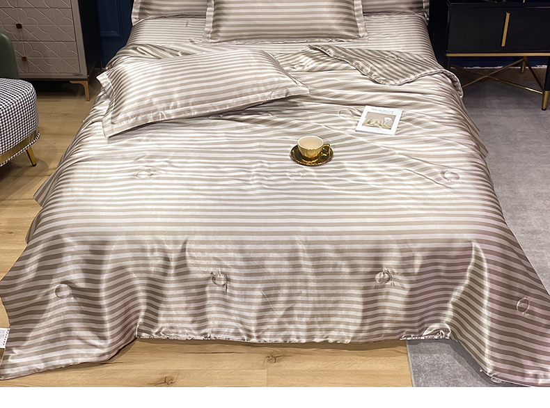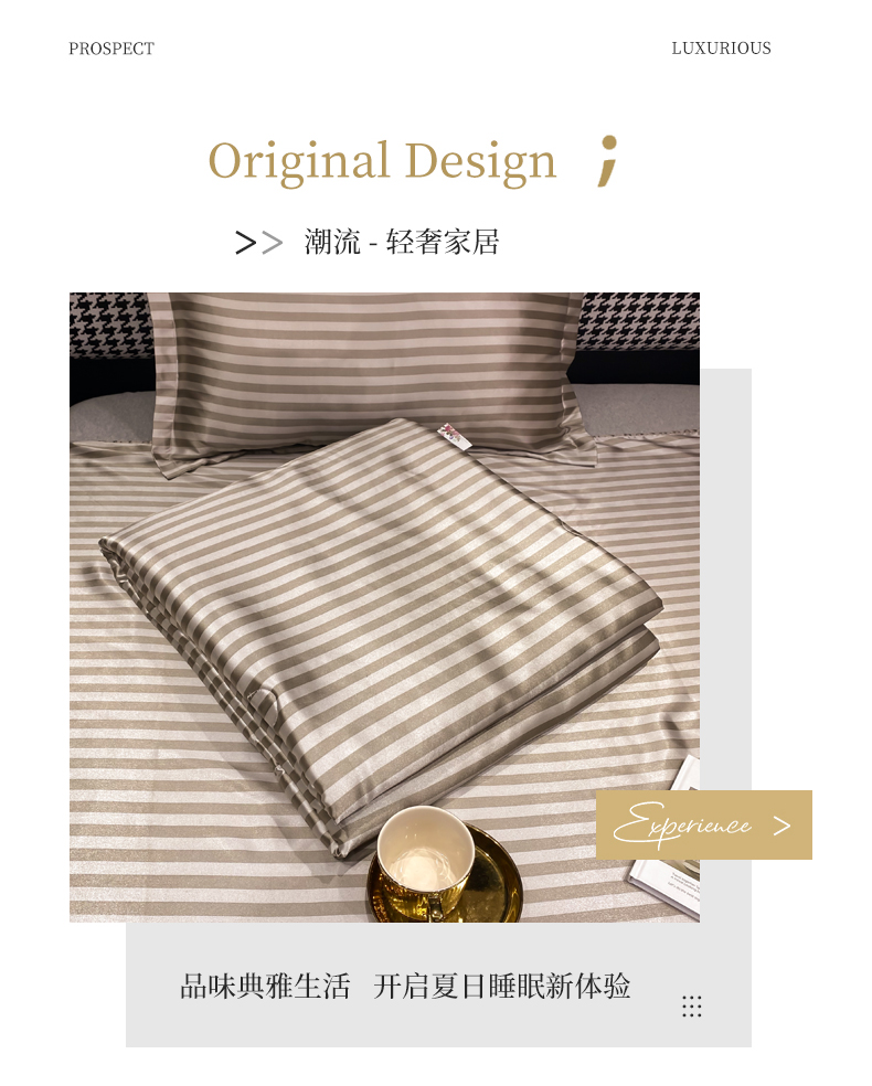 当前位置: 91家纺网 > 商品网购 > 床品套件 > 四件套 > 夏被四件套 > 经年 2025新款条纹丝绸冰丝夏被 咖啡中条-夏被