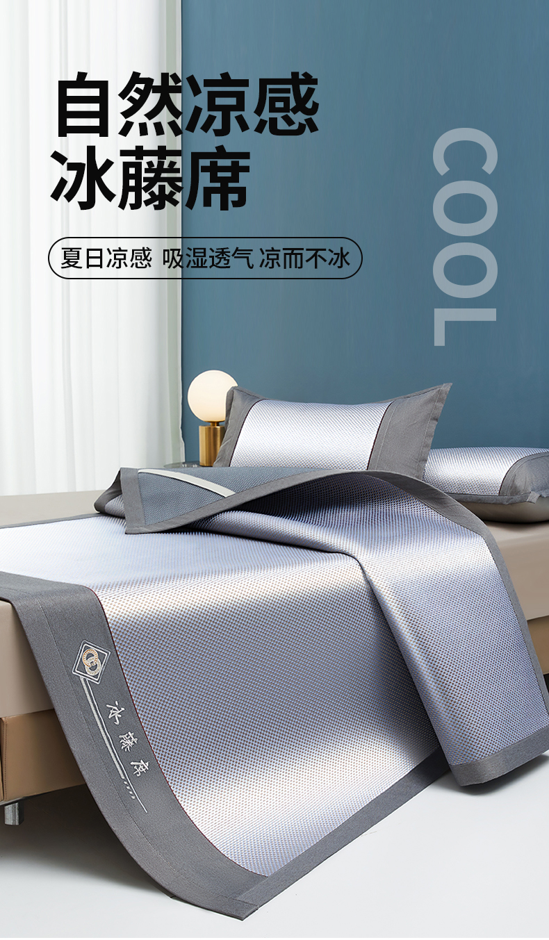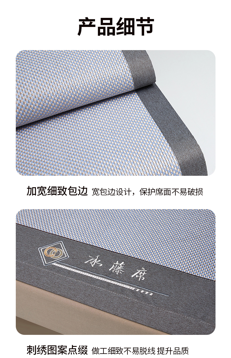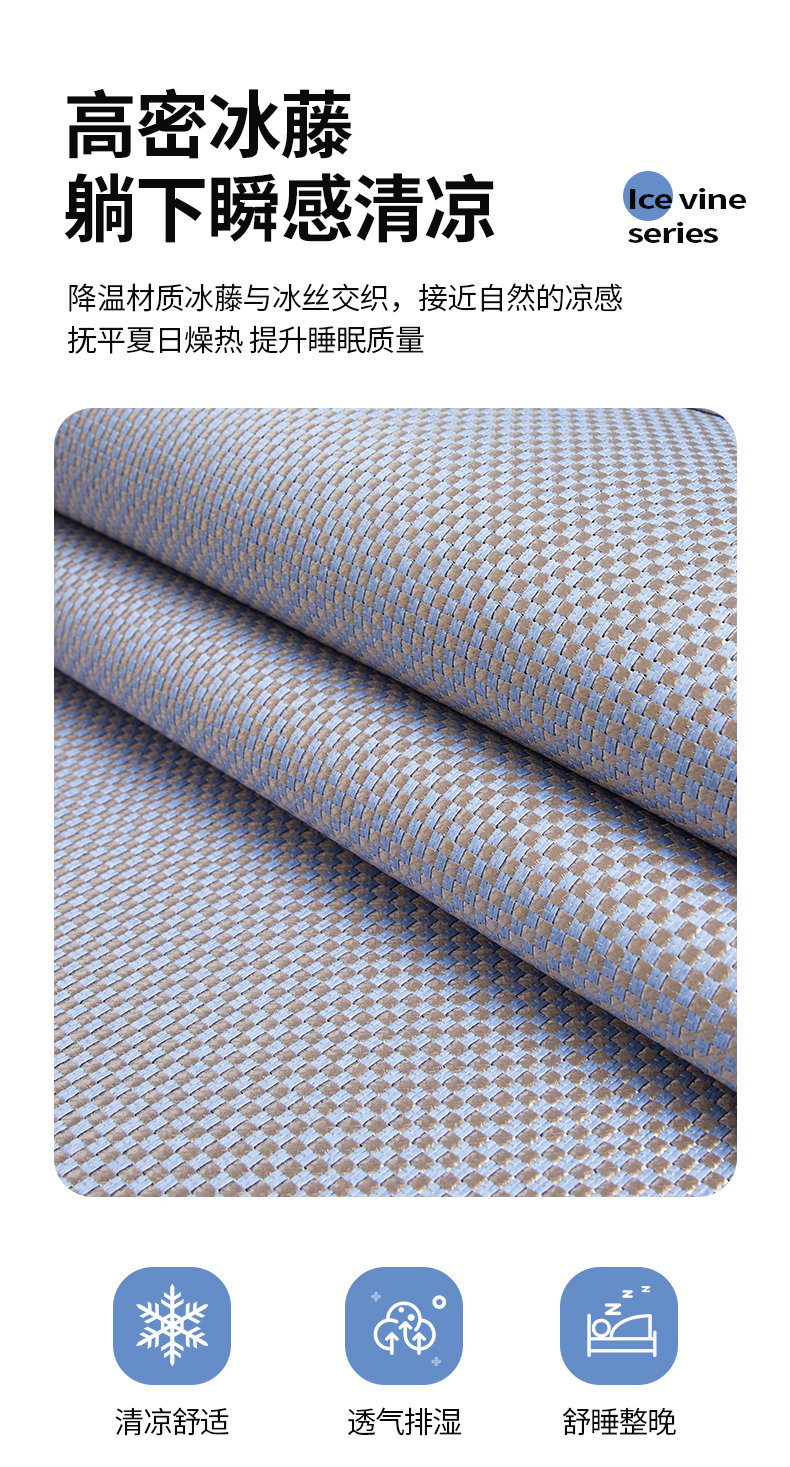 (总)琪琪阁 2026新款冰藤三明治凉席,小米花-灰色,小米花-金色,小米花-绿色,星星-浅灰,星星-深咖,星星-水绿,星星-雾蓝,星星-樱粉