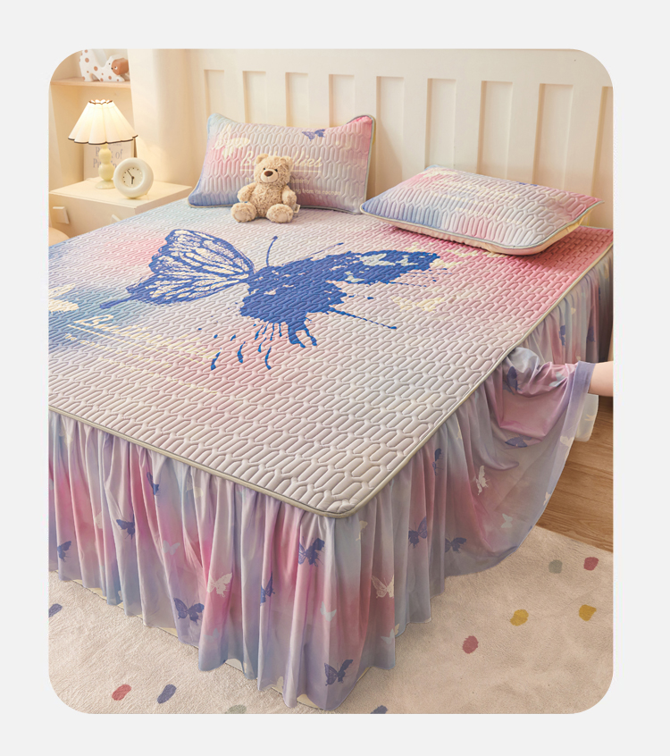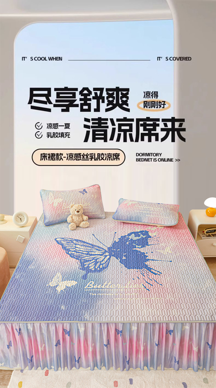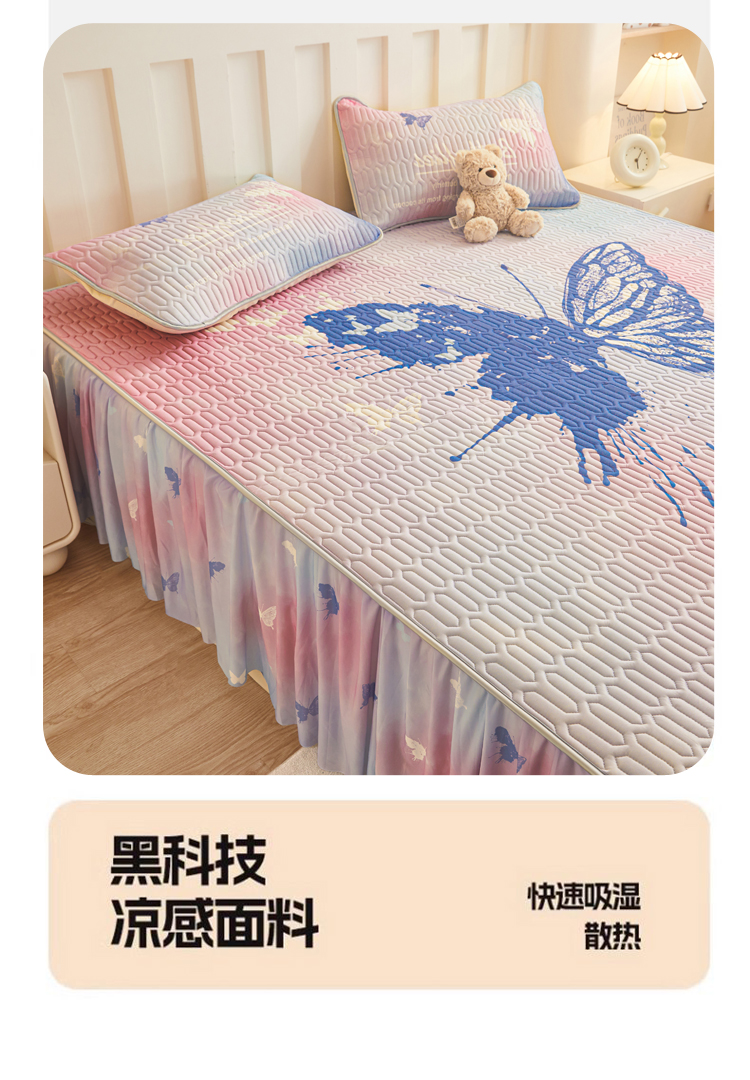 (总)希廷顿 2025新款大版印花乳胶凉席床裙款三件套