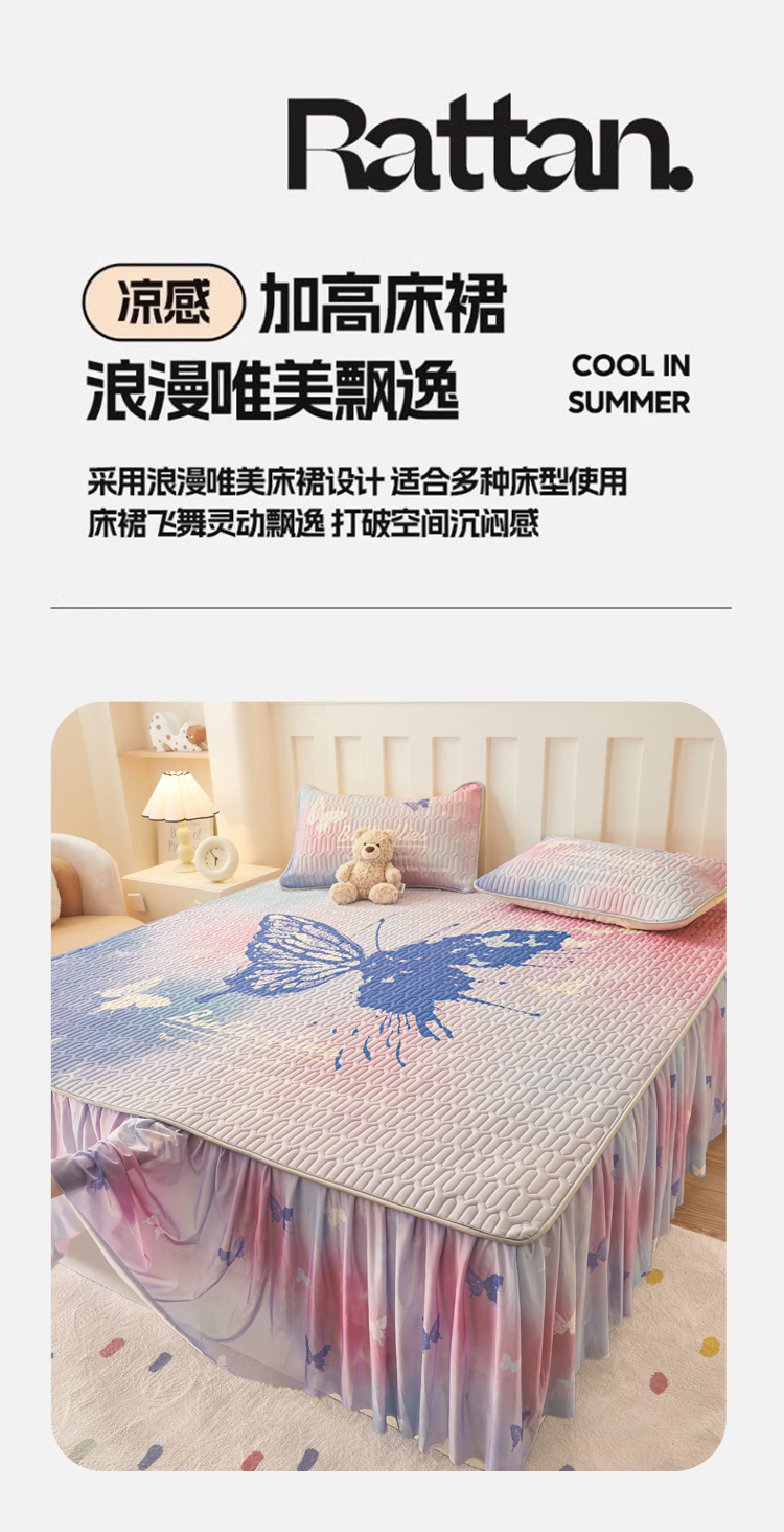 商品名称:(总)希廷顿 2025新款大版印花乳胶凉席床裙款三件套