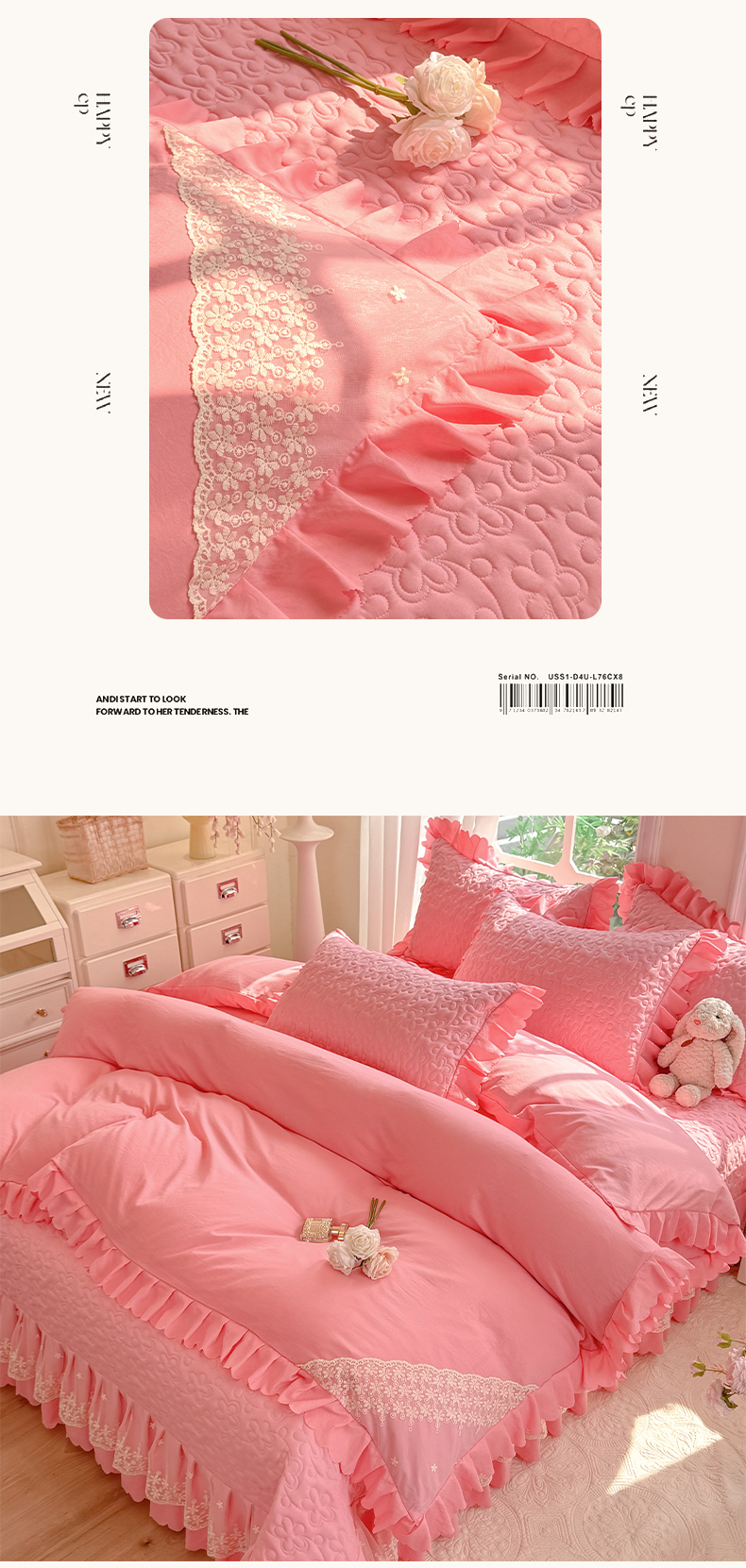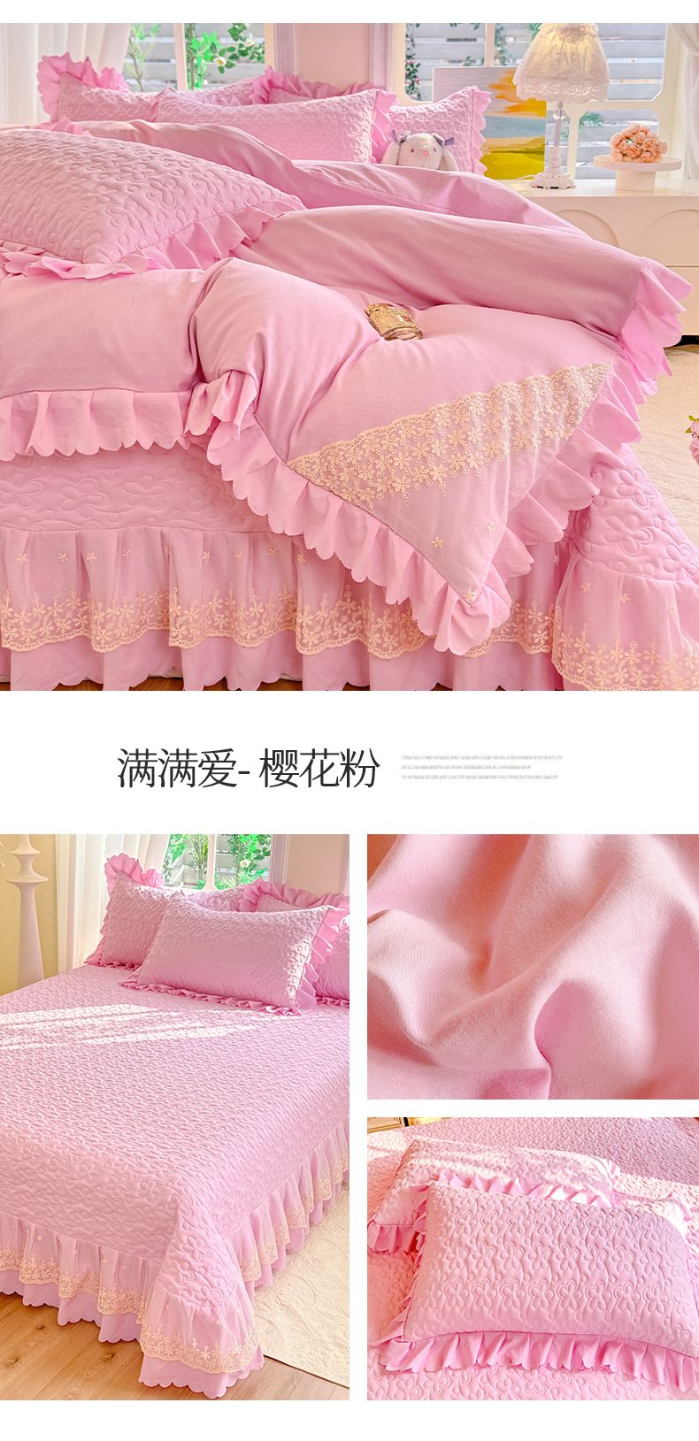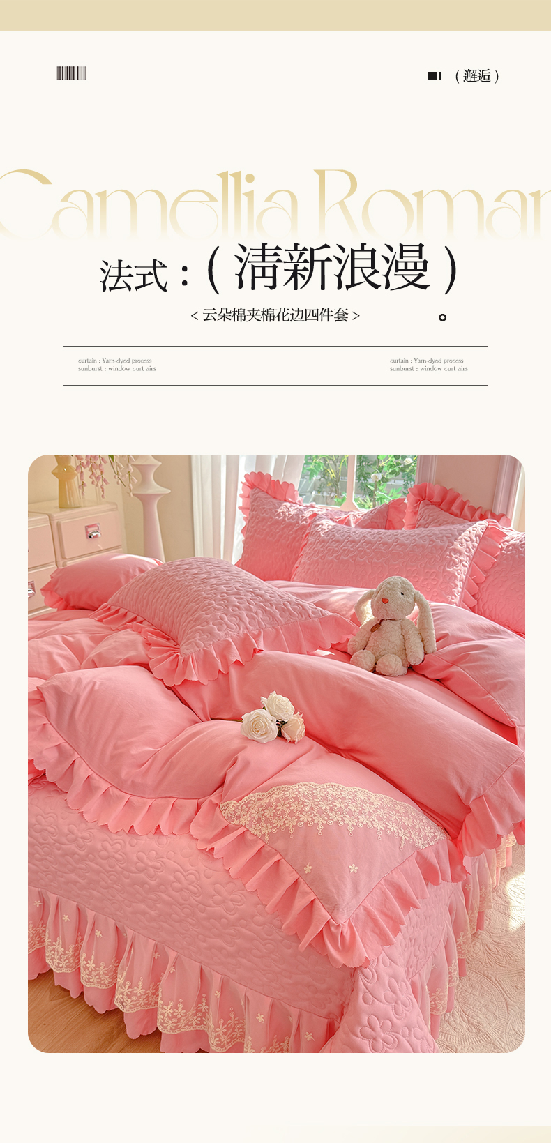 当前位置: 91家纺网 > 商品网购 > 床品套件 > 四件套 > 其它四件套 > 九诺家纺 2025新款花夕云朵棉蕾丝花边床盖四件套 花夕-玉色