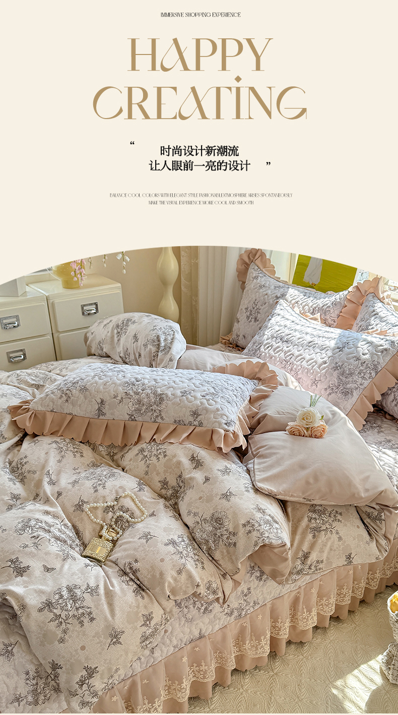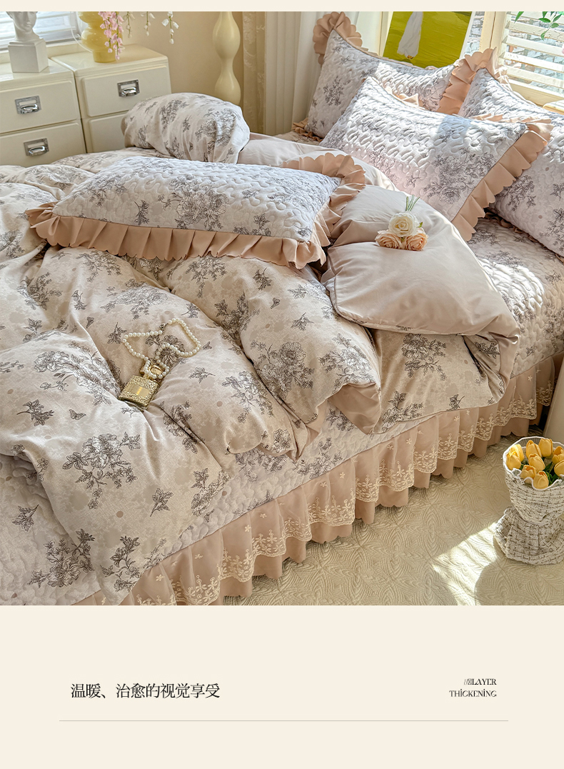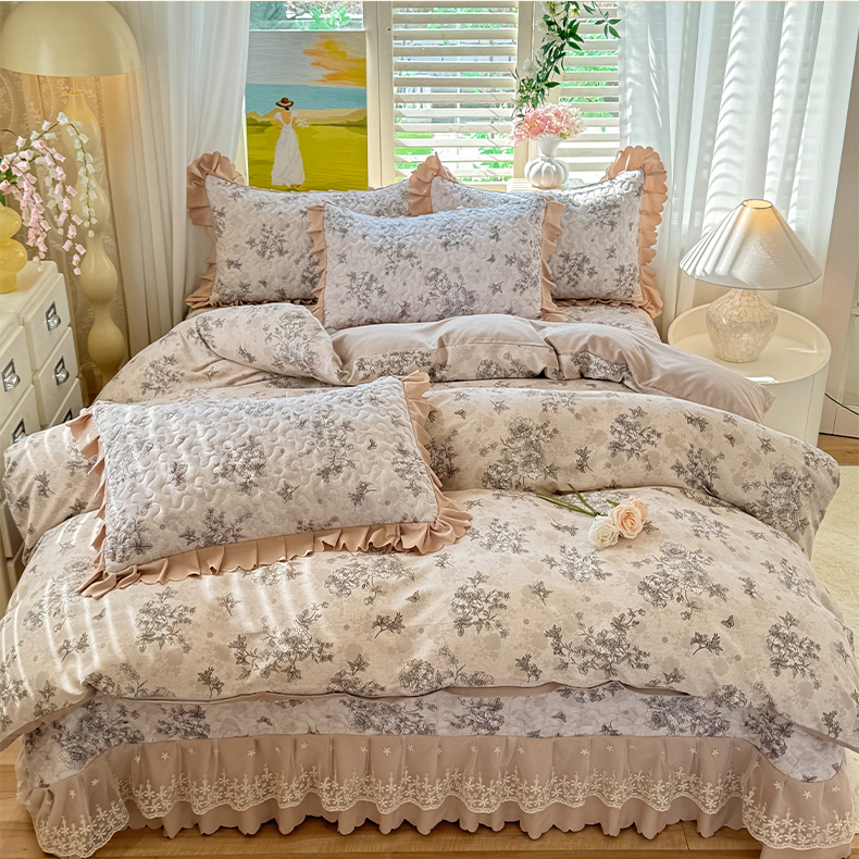 当前位置: 91家纺网 > 商品网购 > 床品套件 > 四件套 > 其它四件套 > 九诺家纺 2025新款韩式云朵棉印花床盖四件套 河畔花梦