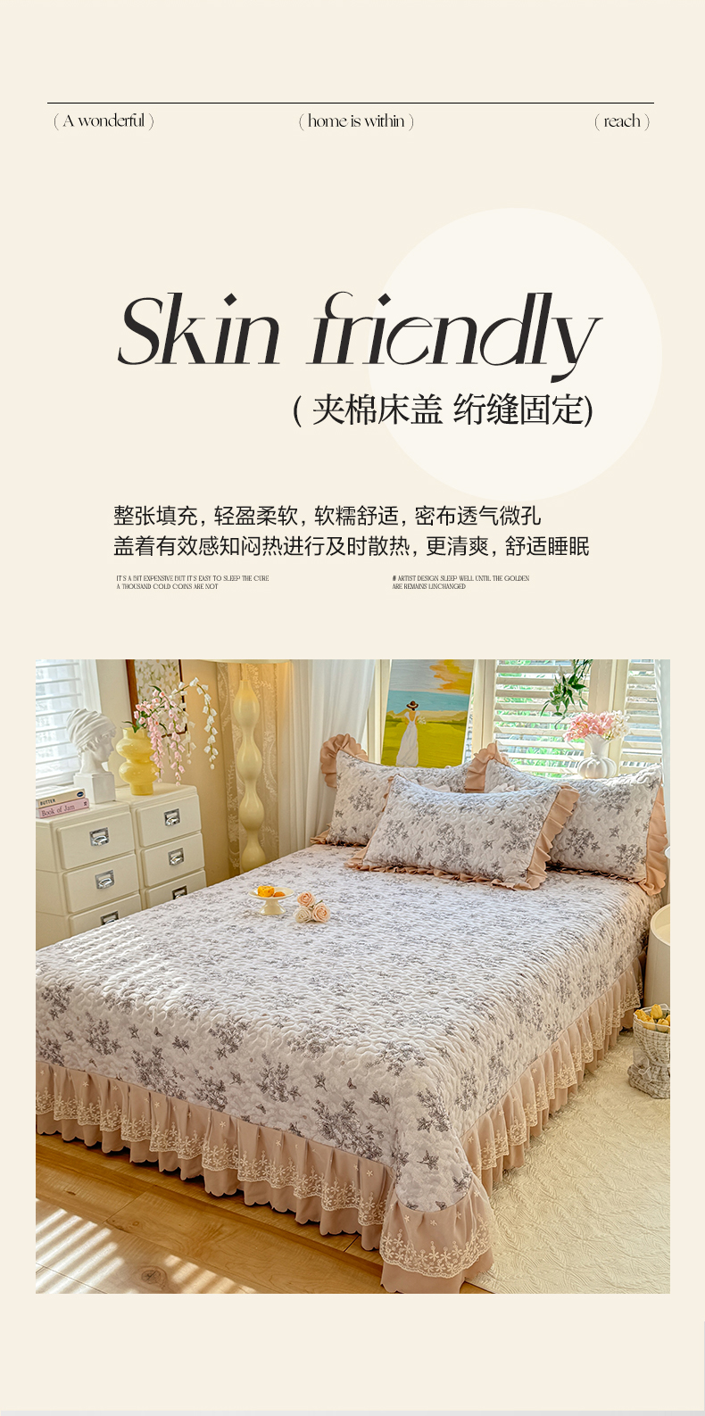 1.5米床盖四件套:被套200x230cm+床盖250x260cm+2只枕套 | ¥80.00 |