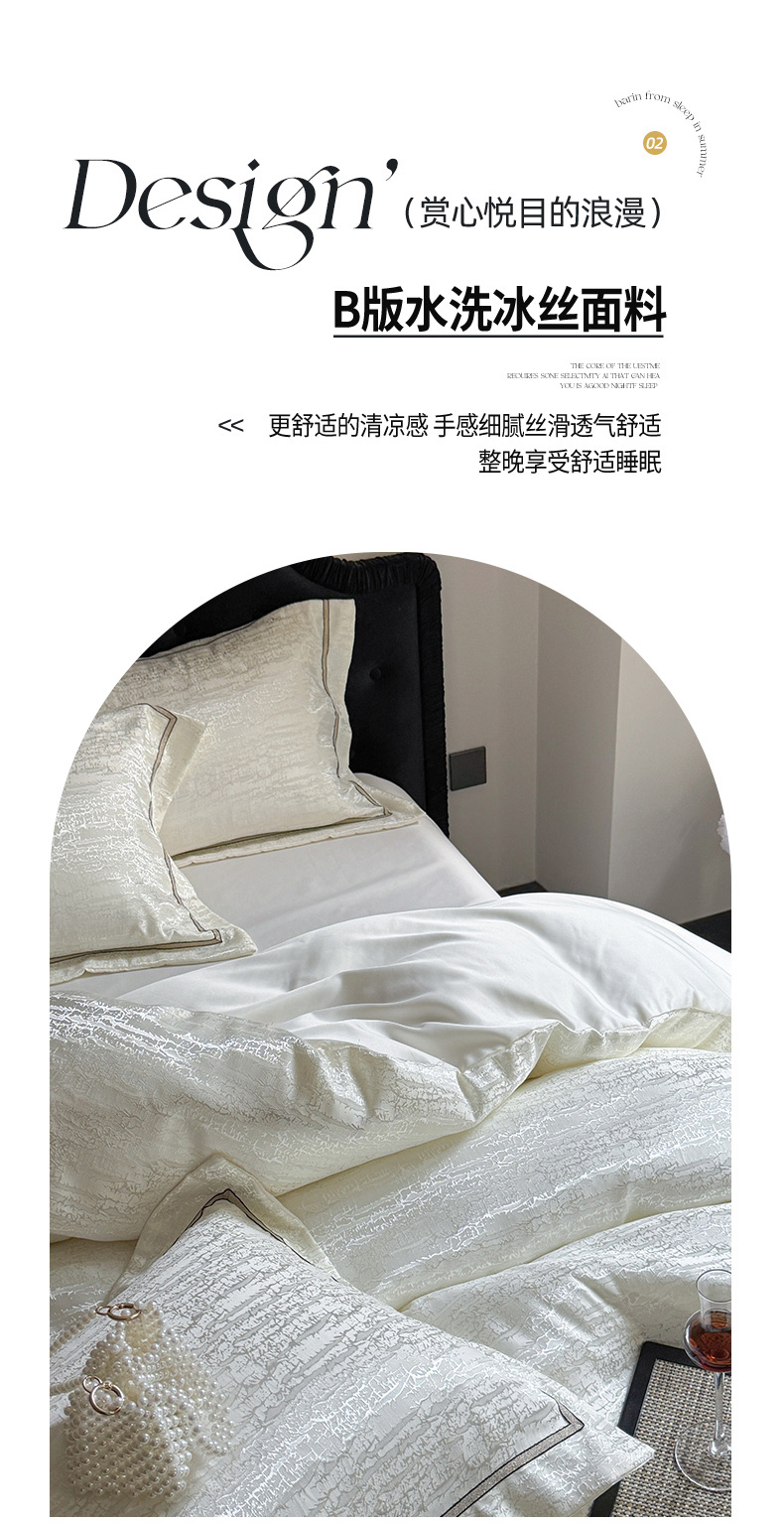 商品名称:(总)优悦生活馆 2025新款冰丝亮丝提花四件套-白月光
