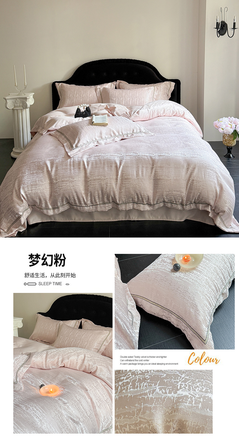 (总)优悦生活馆 2025年新款工艺款冰丝浮雕拼接四件套,璀璨之恋-粉,璀璨之恋-红,璀璨之恋-香槟