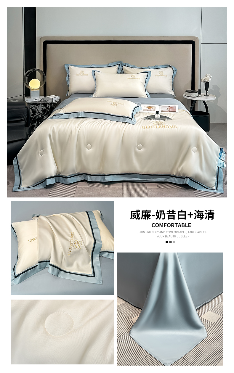 笙意家纺2025新款水洗真丝夏被 威廉-奶昔白+海清