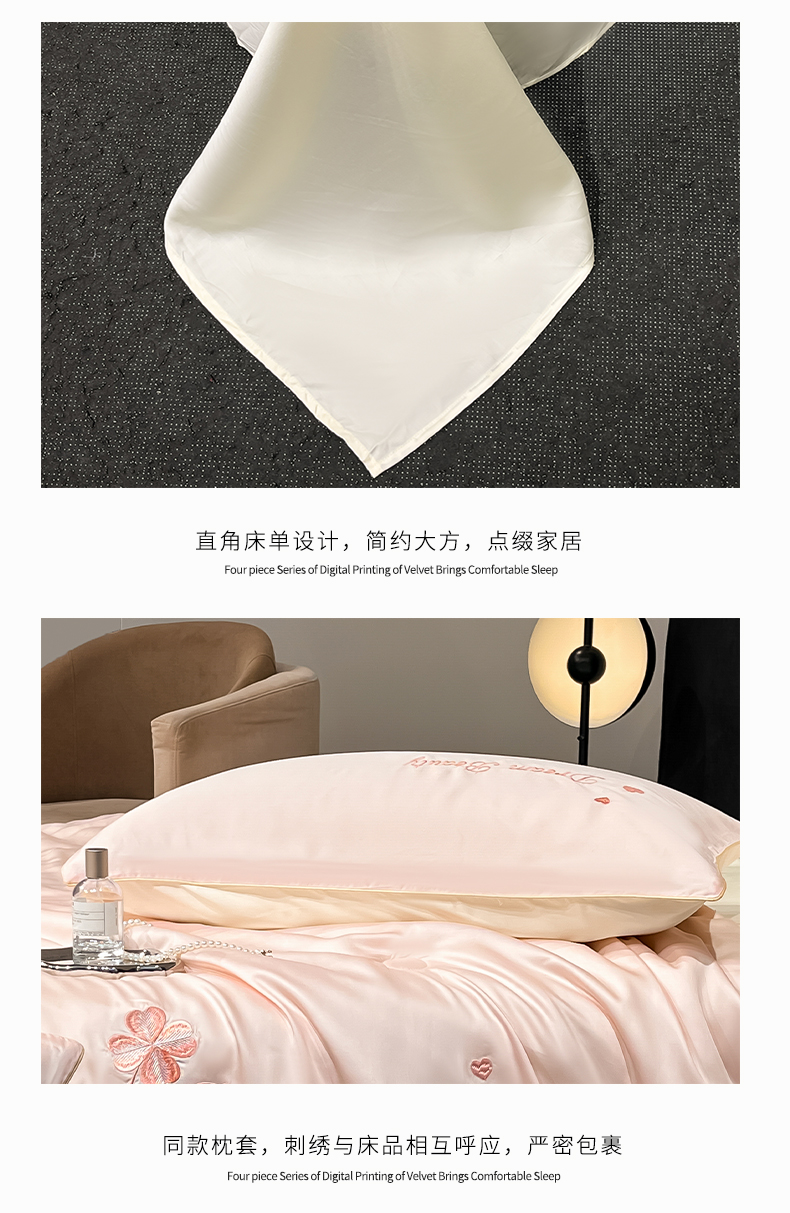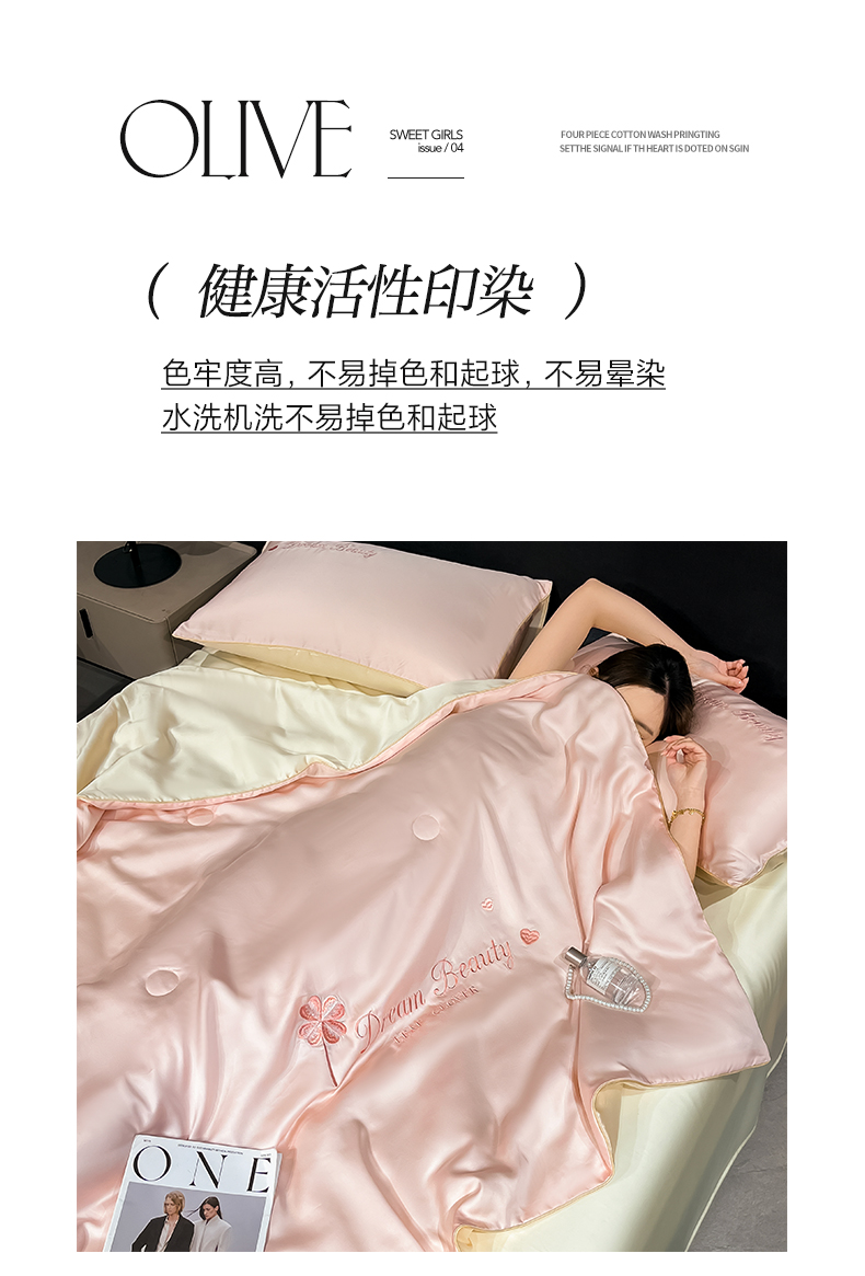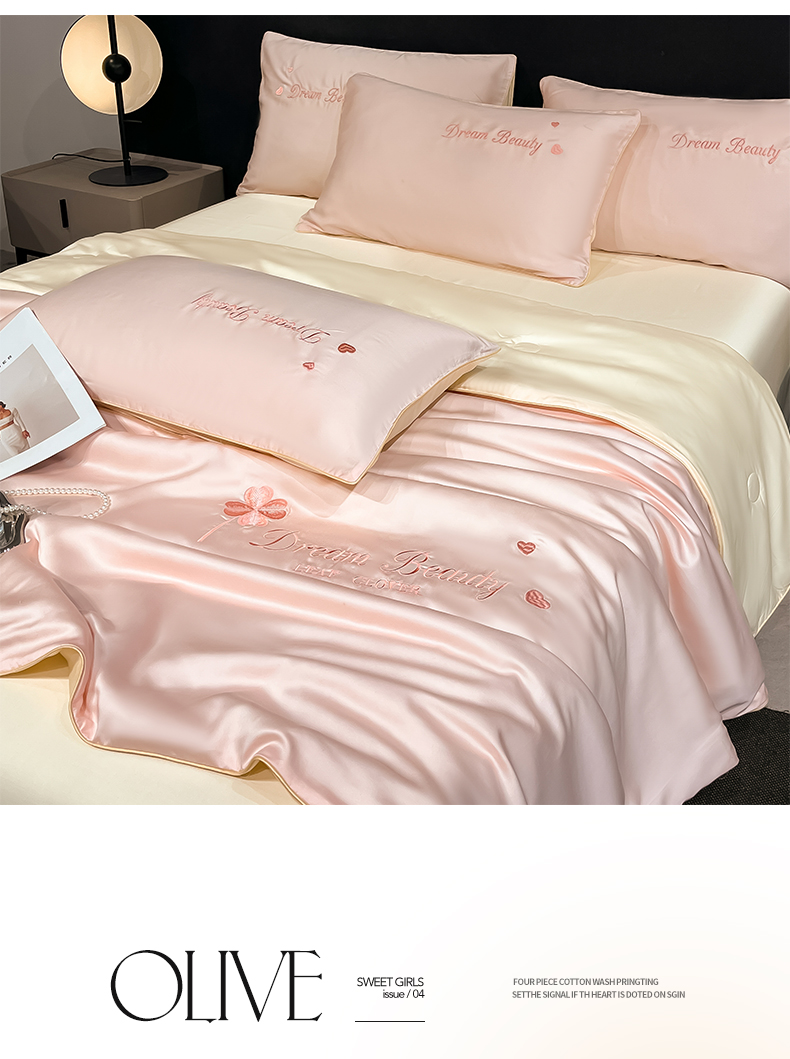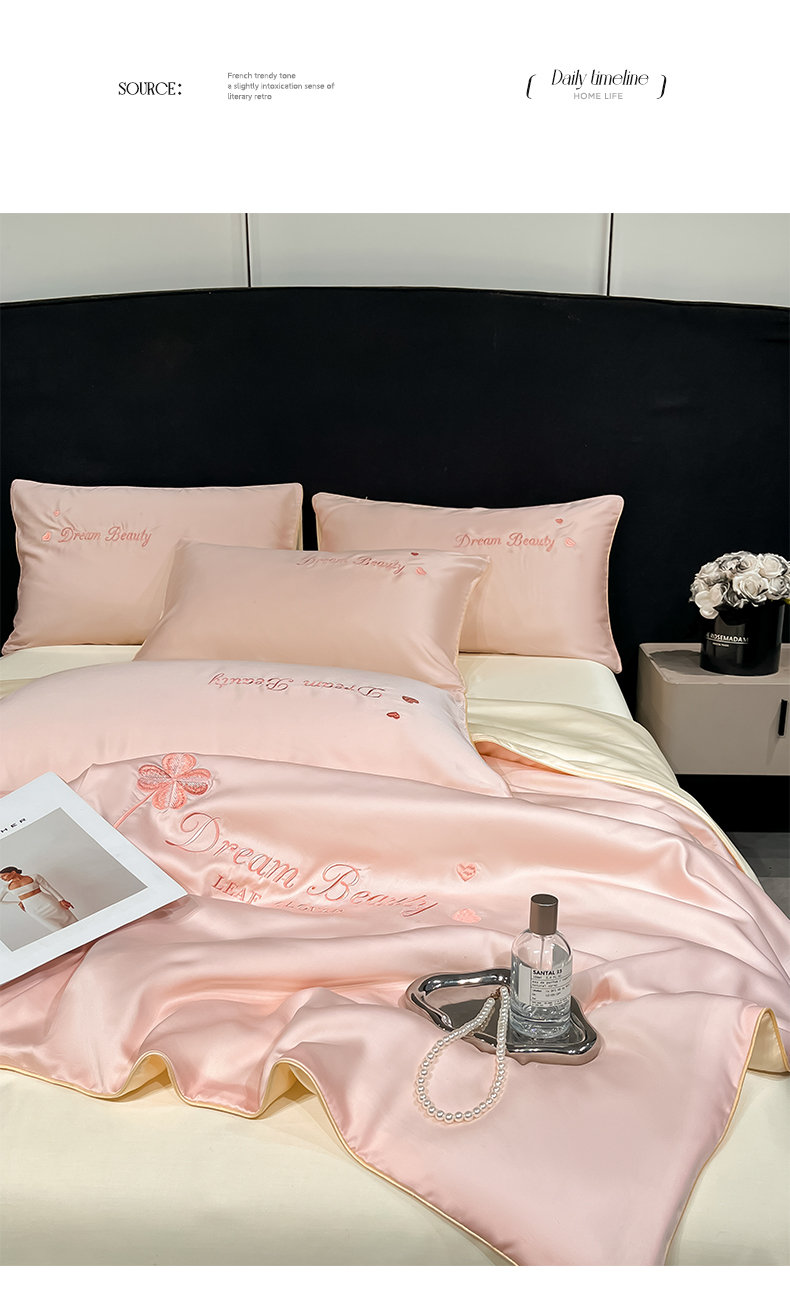 • 91家纺网 家纺一手货源 找家纺 如一 2025新款水洗冰丝麻绳夏被四件套-四叶草 四叶草-粉米