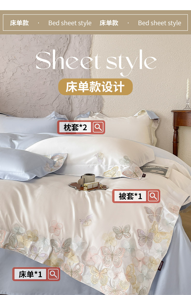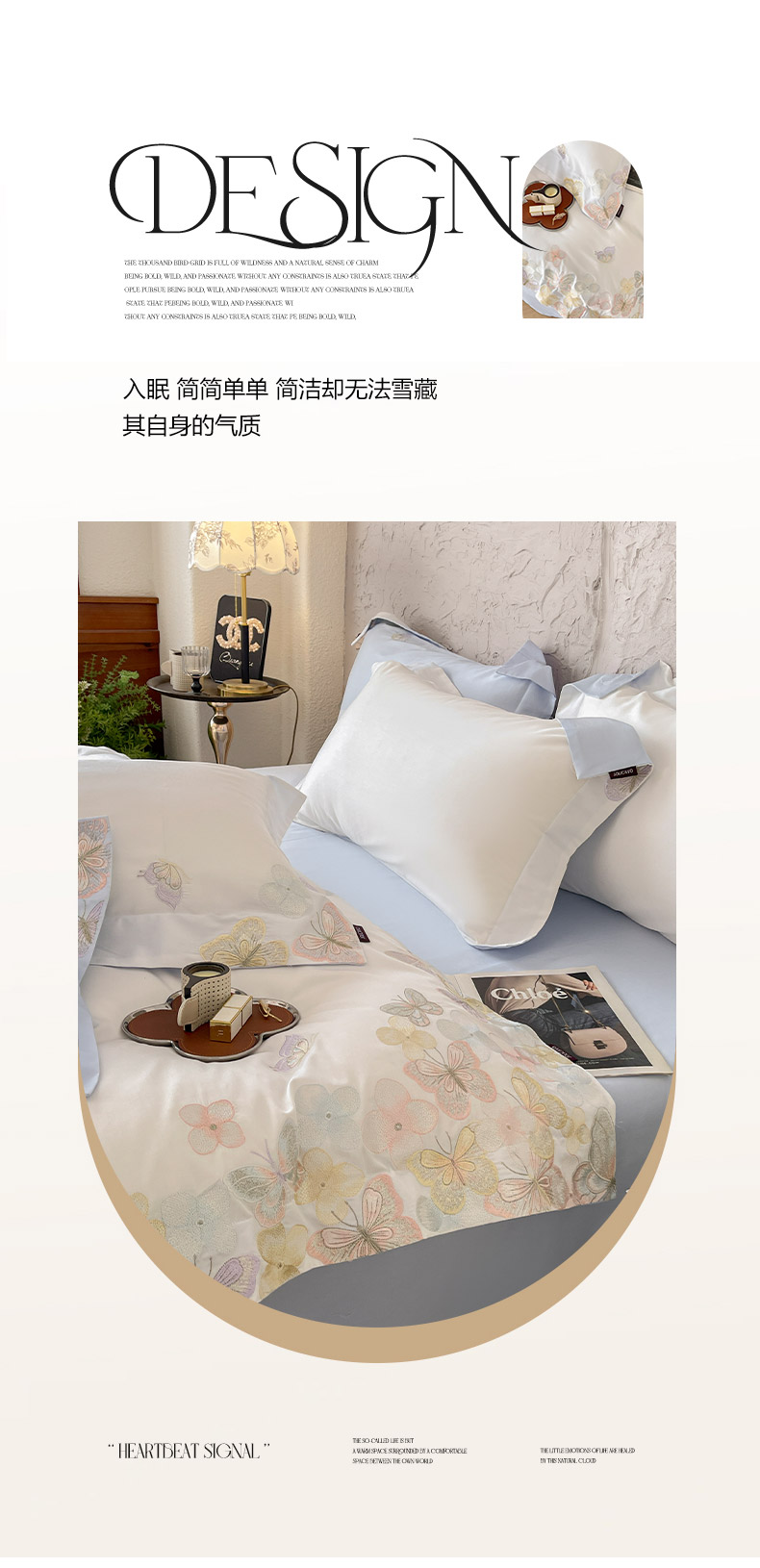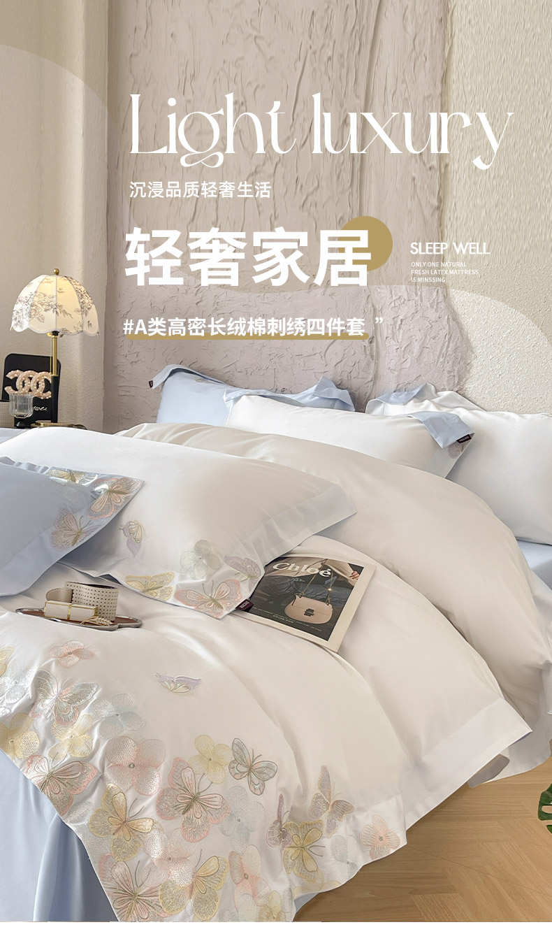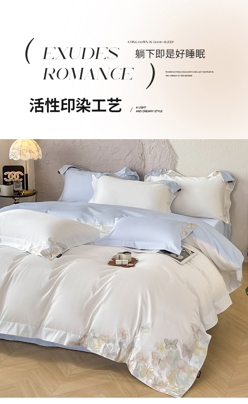 当前位置: 91家纺网 > 商品网购 > 床品套件 > 四件套 > 全棉普通四件套 > 2025新款高端轻奢A类母婴级长绒棉全工艺刺绣四件套纯棉全棉高端春夏季爆款床上用品 茉婉-白蓝