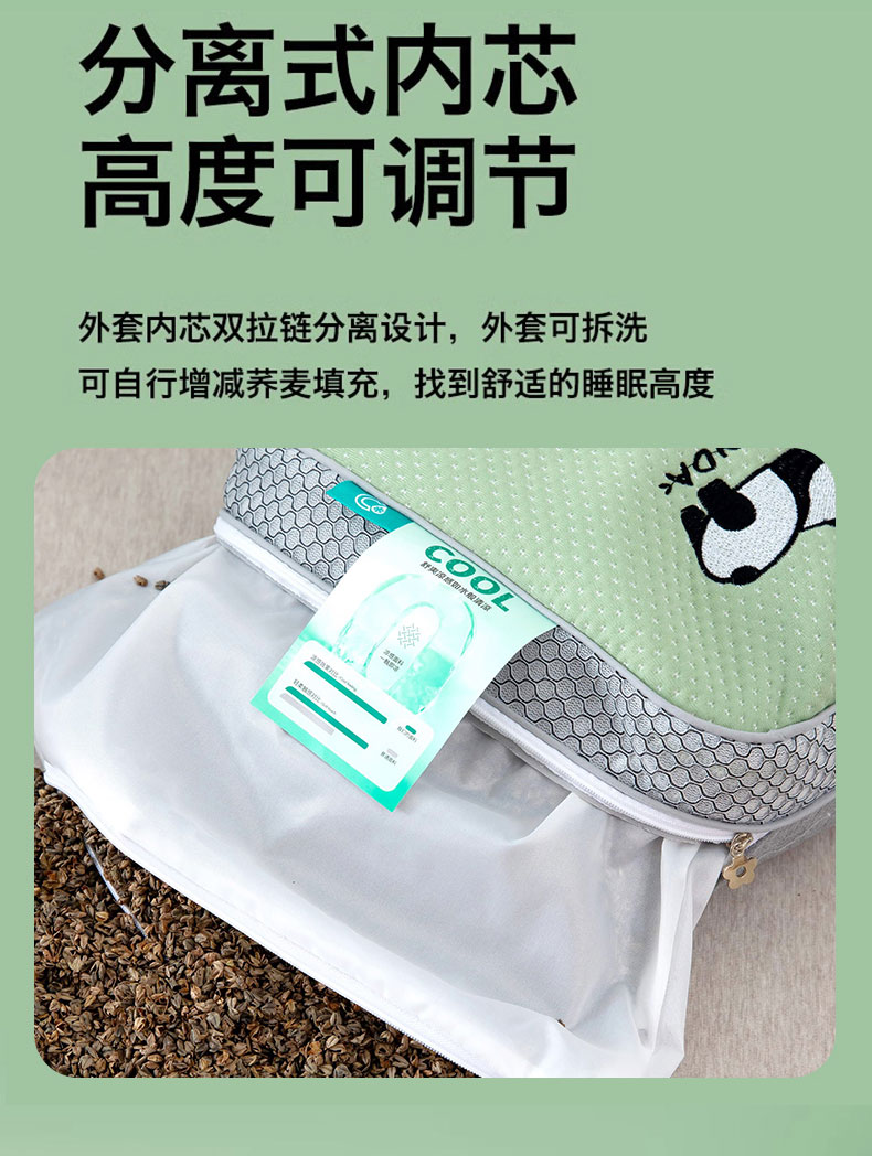 商品名称:(总)2025新款凉感熊猫荞麦枕 枕头枕芯