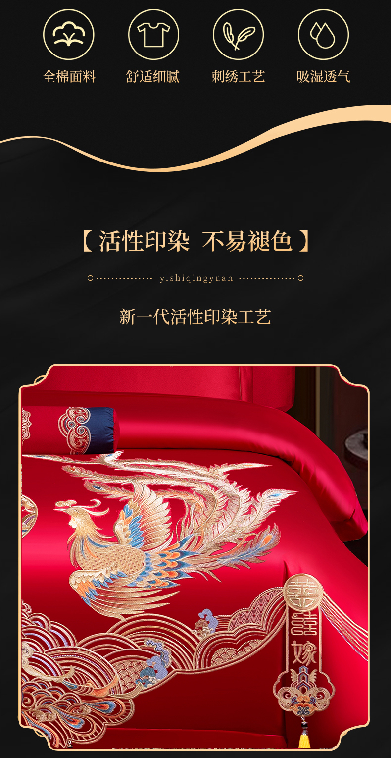 当前位置: 91家纺网 > 商品网购 > 床品套件 > 四件套 > 婚庆四件套 > 慕她家纺 2025新款慕她婚庆四件套全棉纯棉结婚刺绣花多件套六八十床品 天生一对
