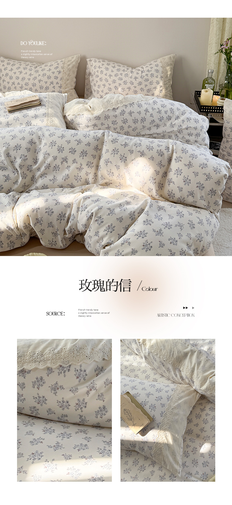 当前位置: 91家纺网 > 商品网购 > 床品套件 > 四件套 > 针织棉四件套 > 2025新款A类针织棉双层纱蕾丝花边四件套 水彩花开