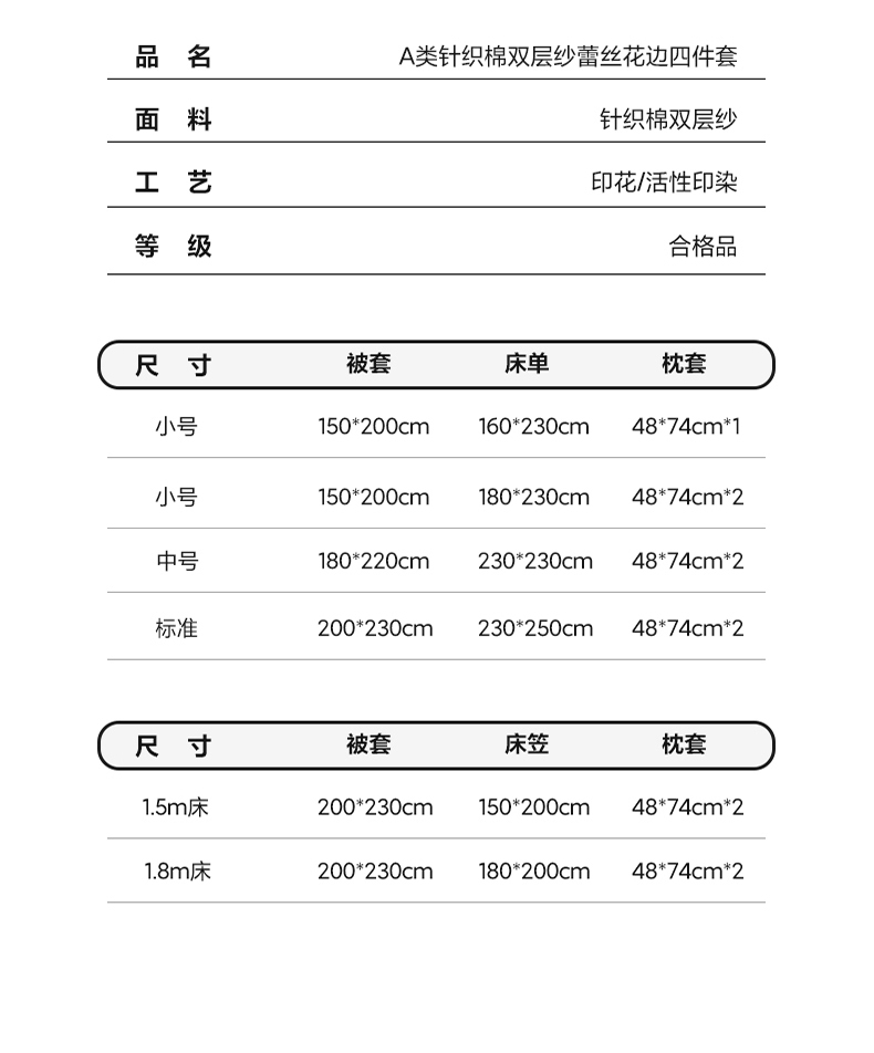 1.5m床笠四件套被套200*230 | ¥85.00 |