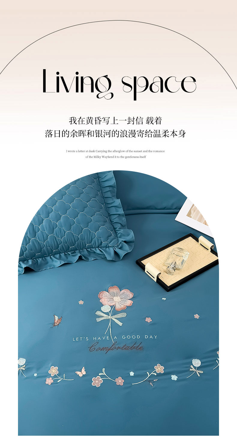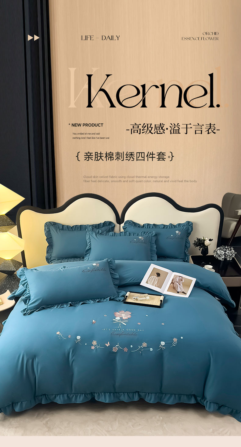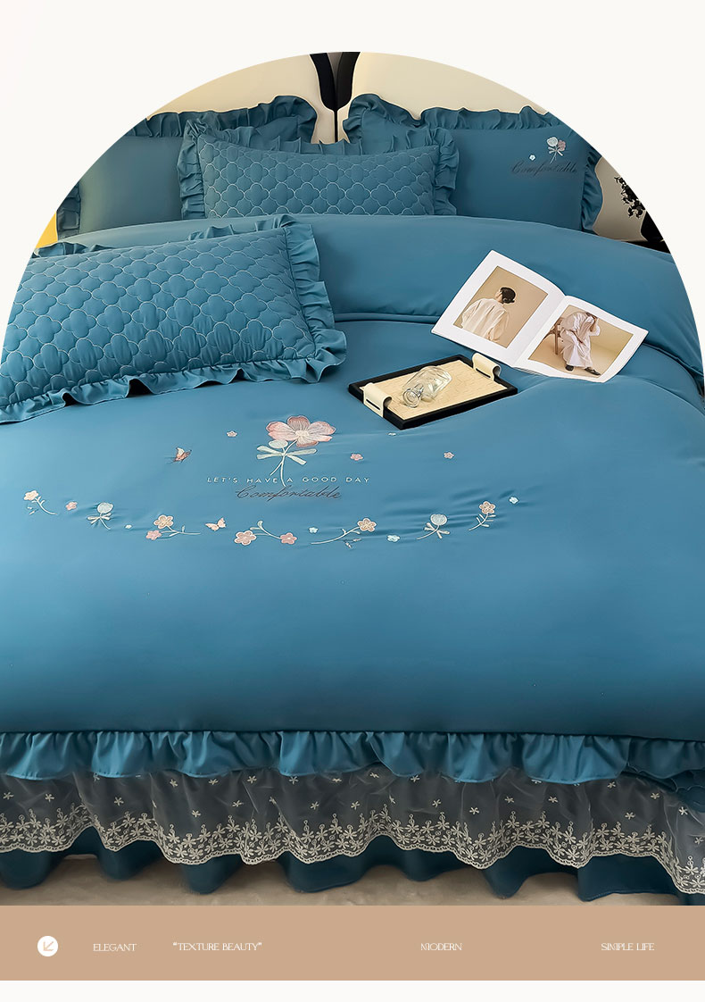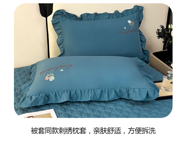 商品名称:2025新款韩版刺绣花边夹棉床盖蕾丝边四件套 盛若花语-豆沙