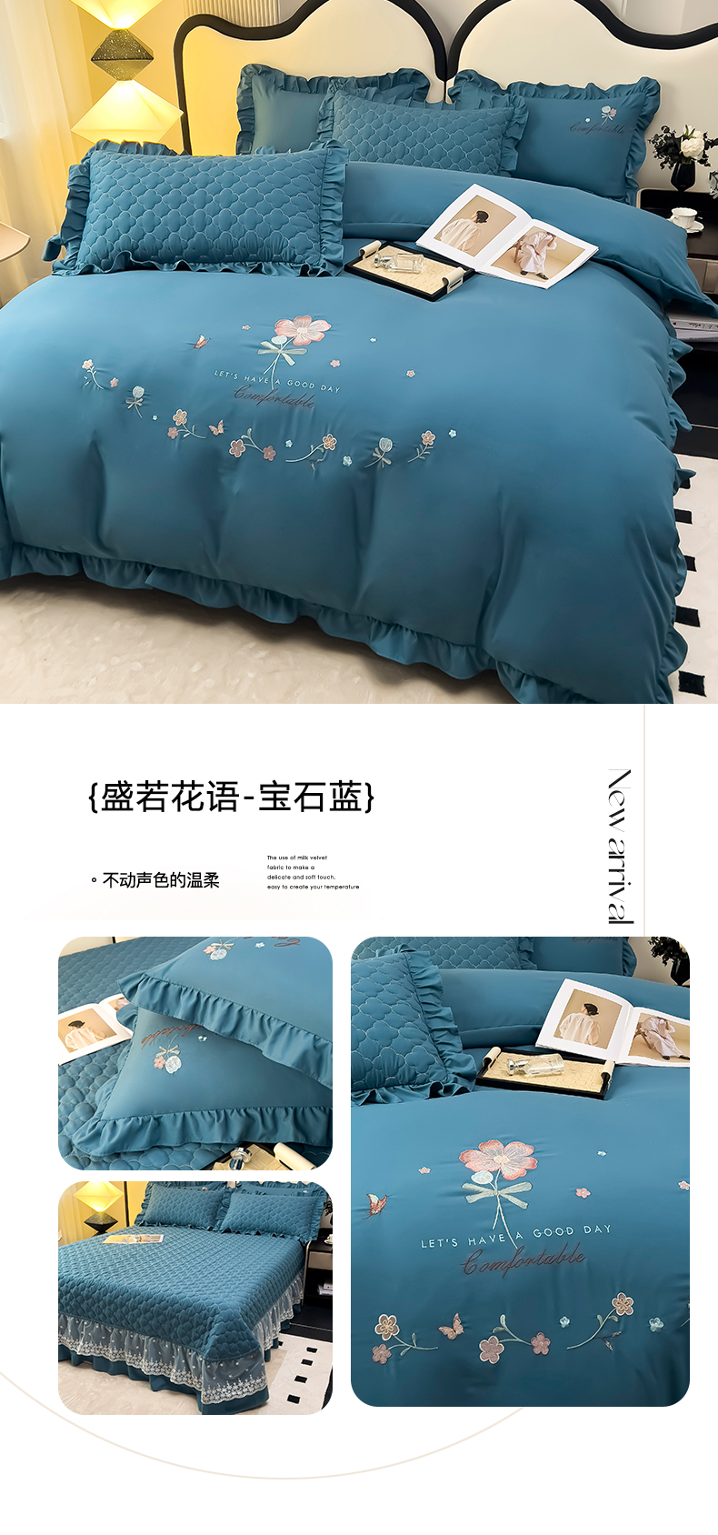 (总)小叮当家纺仓储工厂店 2025新款水晶绒夹棉床裙四件套,宝石兰,藏青,豆沙,粉玉,灰,酒红,墨绿,月光蓝