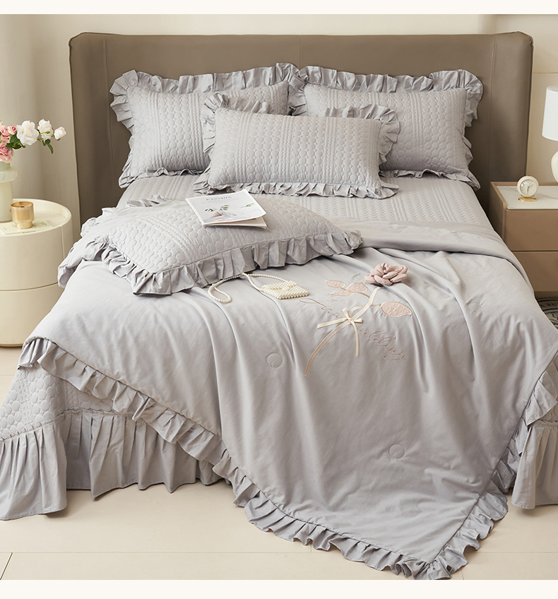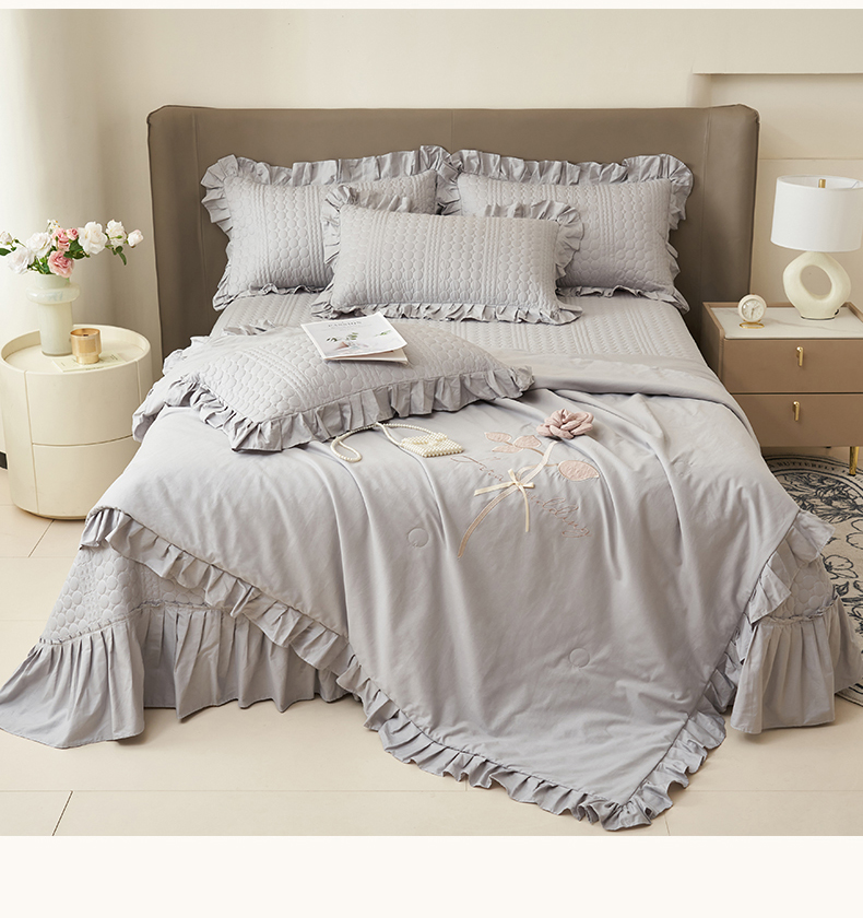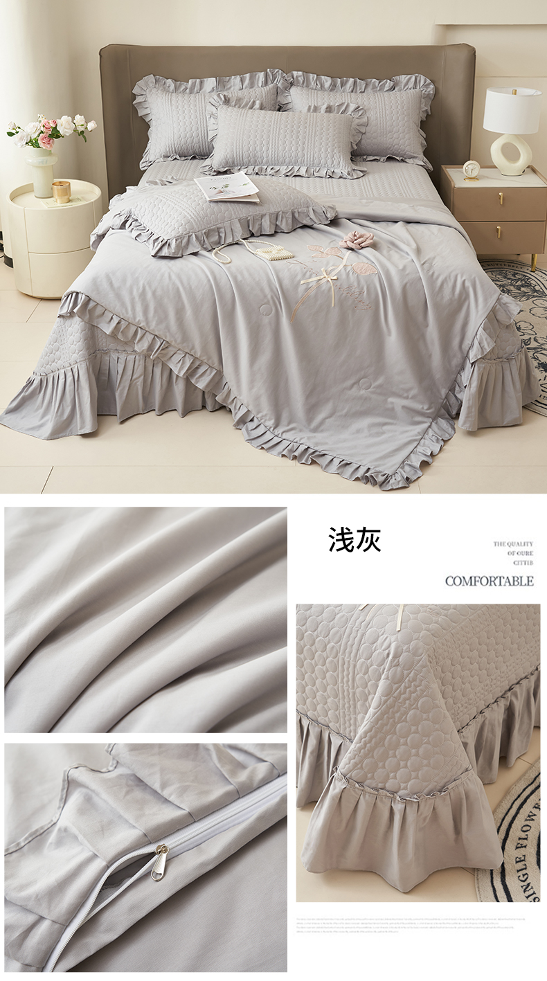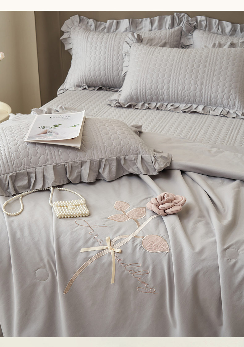 恒爱 2025新款A类全棉纯棉多功能夏被夏凉被空调被四件套-一枝独秀 浅灰