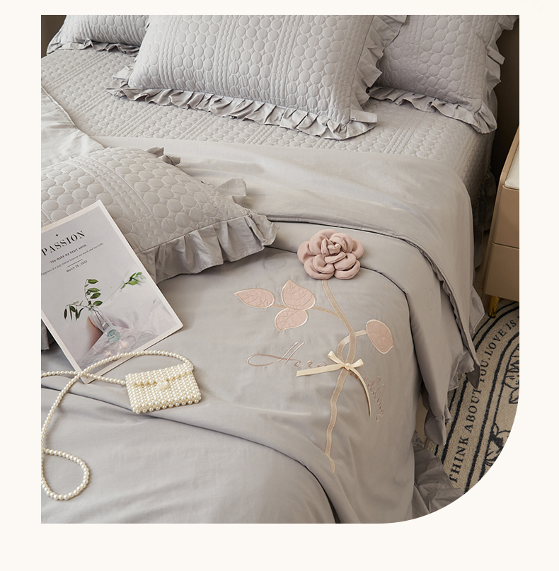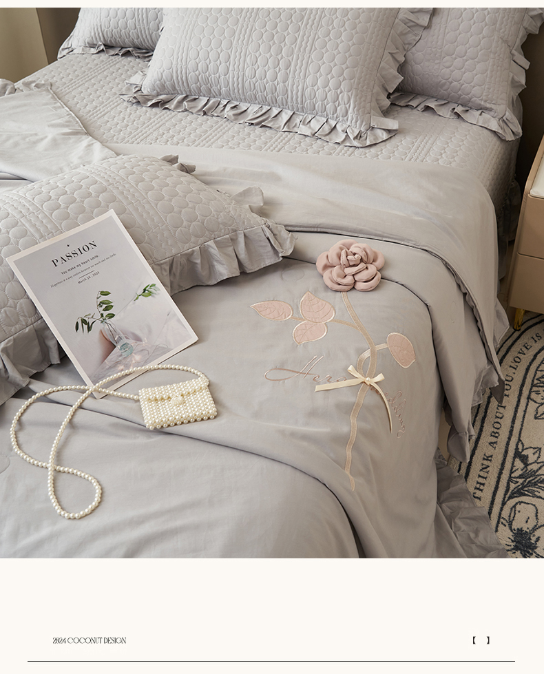 商品名称:恒爱 2025新款A类全棉纯棉多功能夏被夏凉被空调被四件套-一枝独秀 浅灰