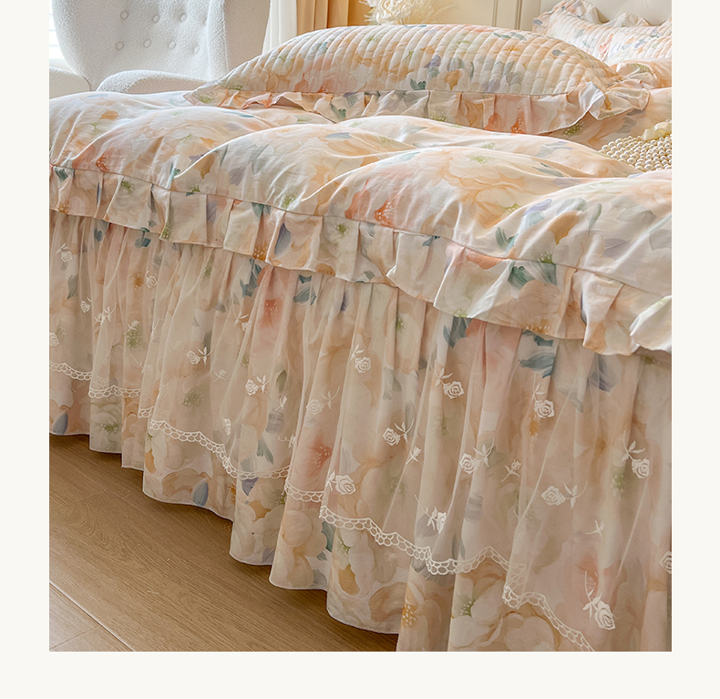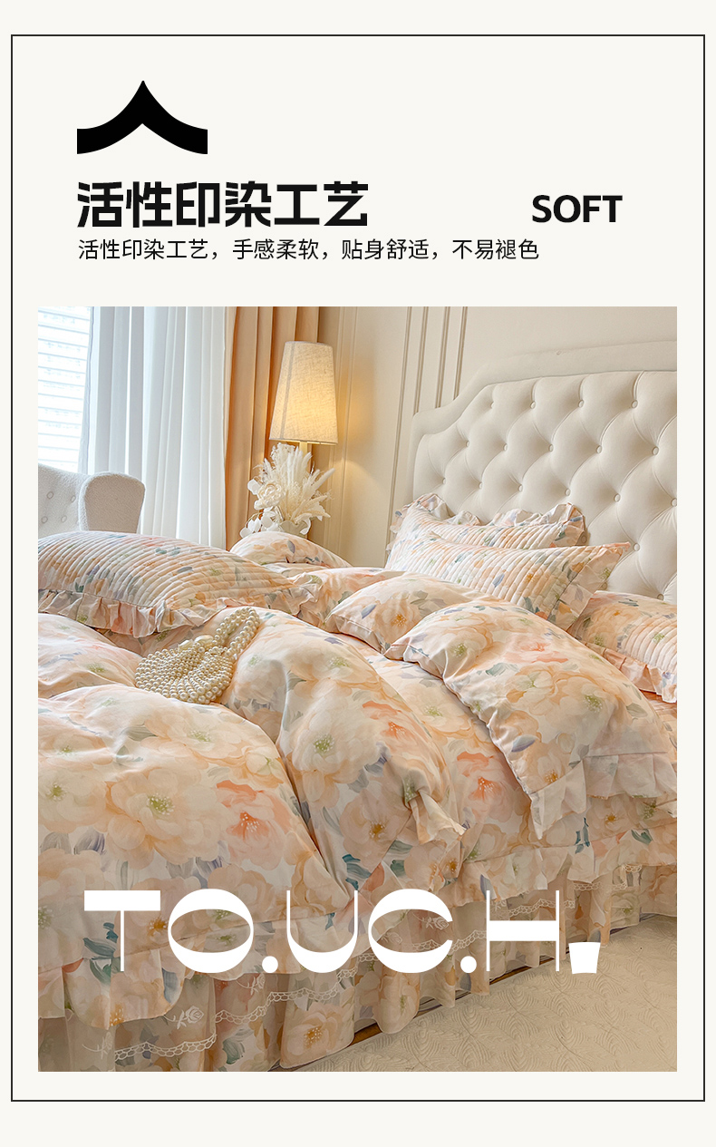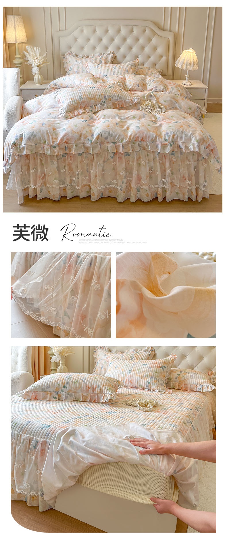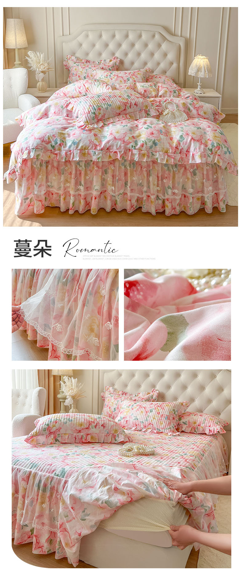 (总)恋尚 2025新款全棉纯棉蕾丝印花床笠裙四件套,芙微,花蝶语,花牺,蔓朵,浅栀,夏瑶,向朵,寻芳朵朵,荨花