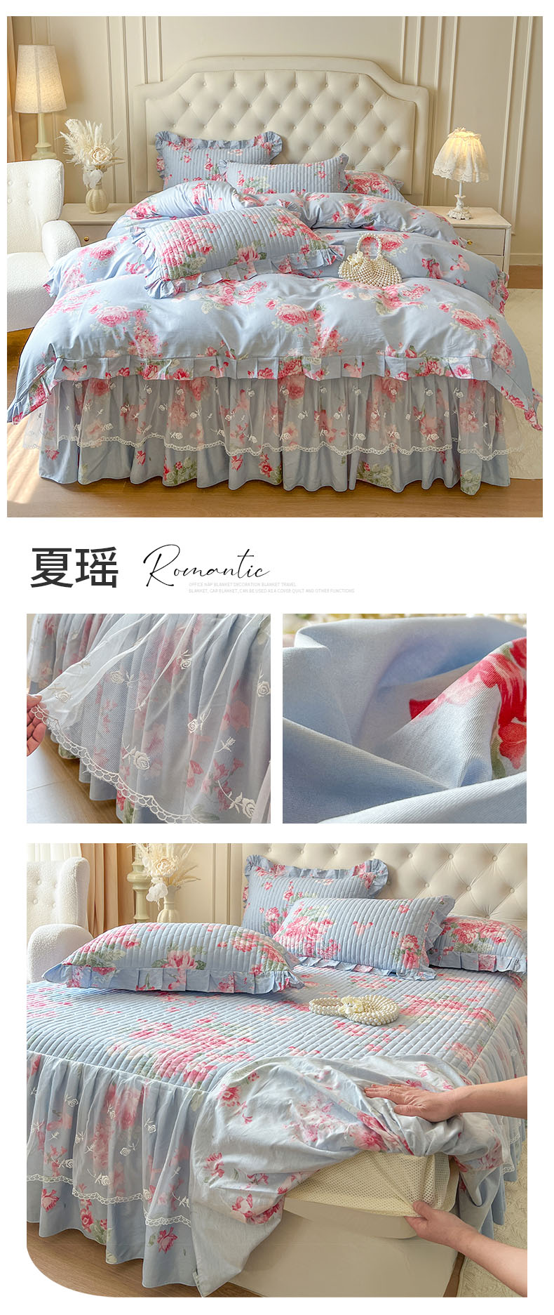 (总)恋尚 2025新款全棉纯棉蕾丝印花床笠裙四件套