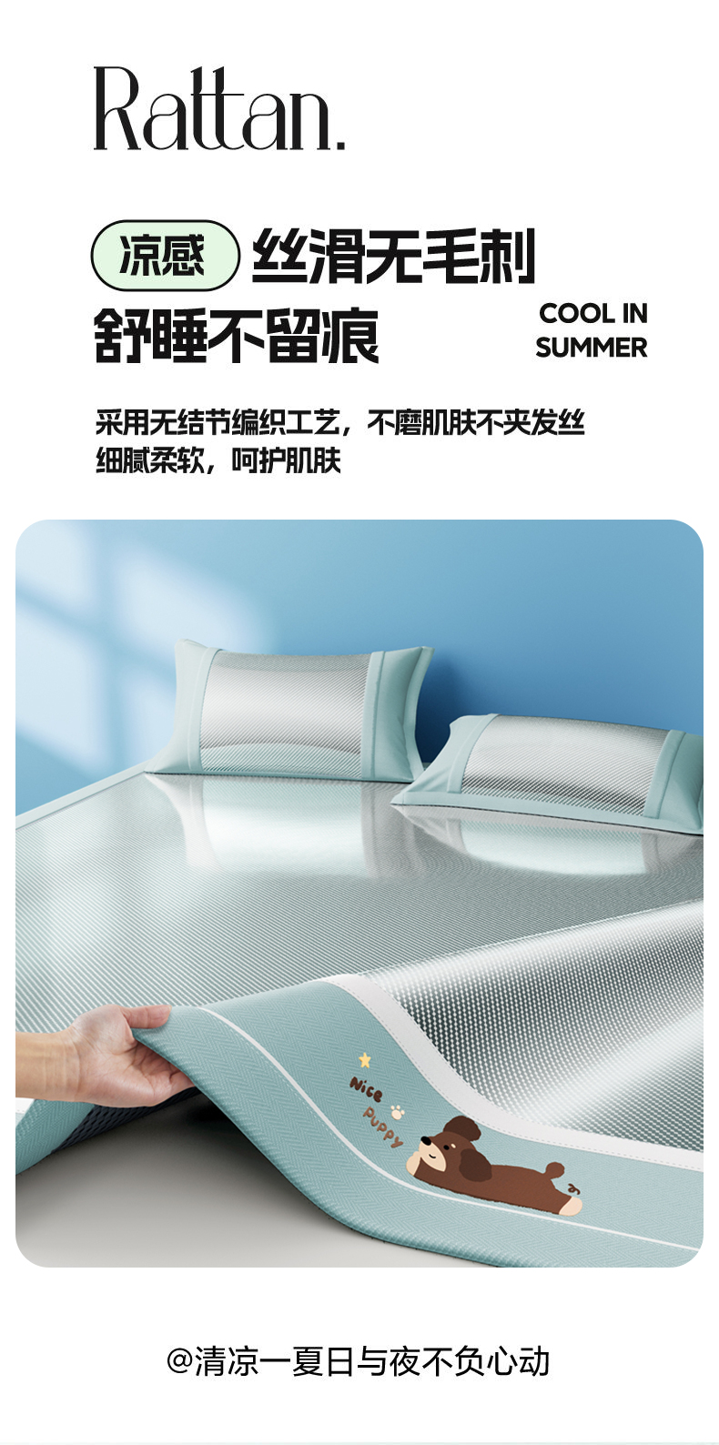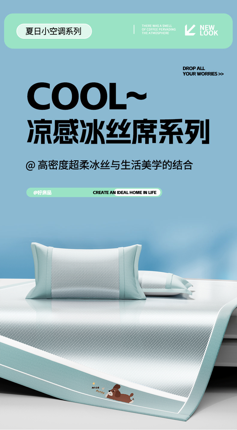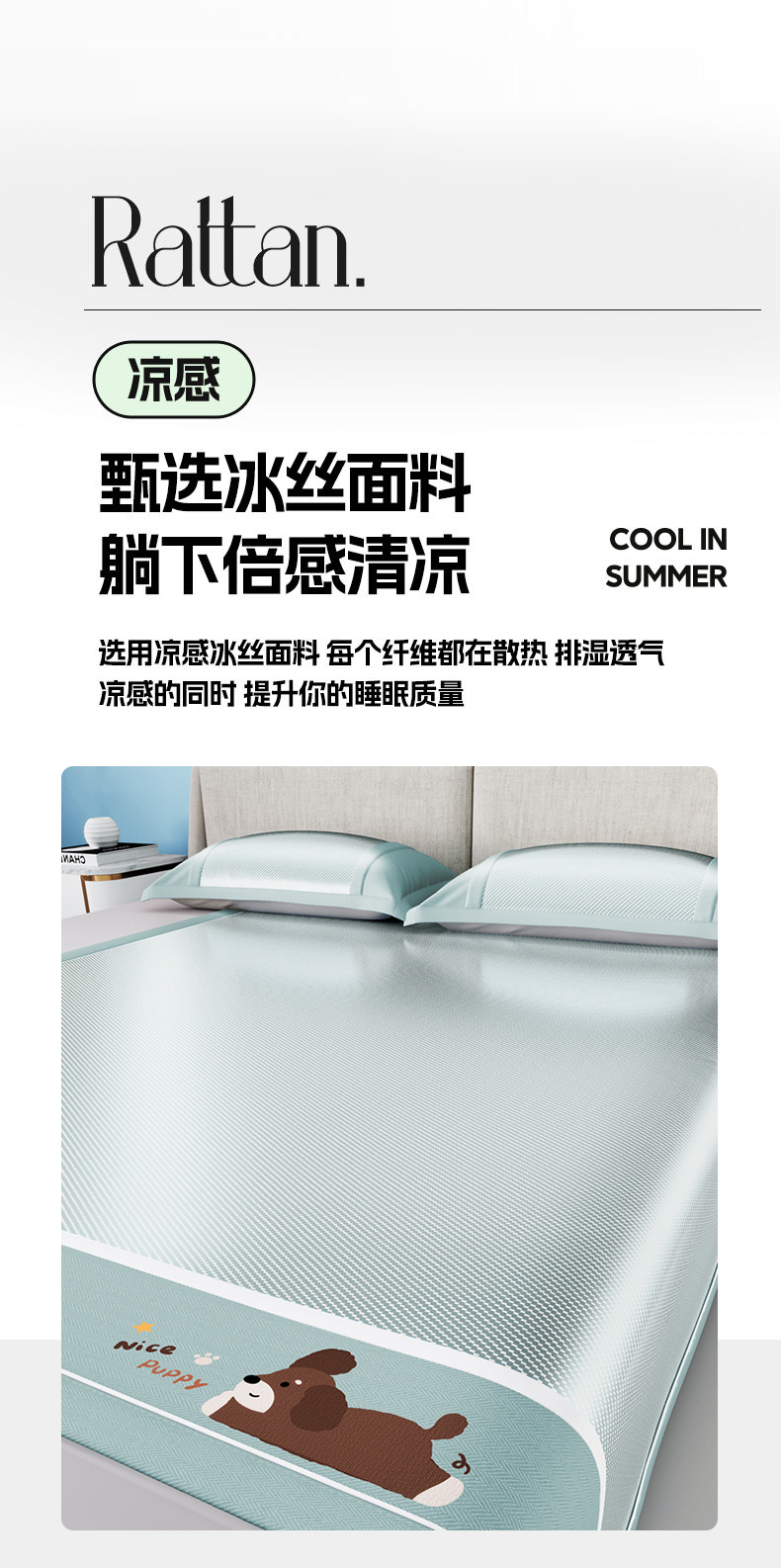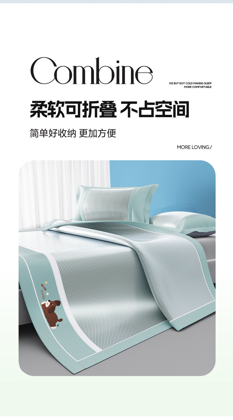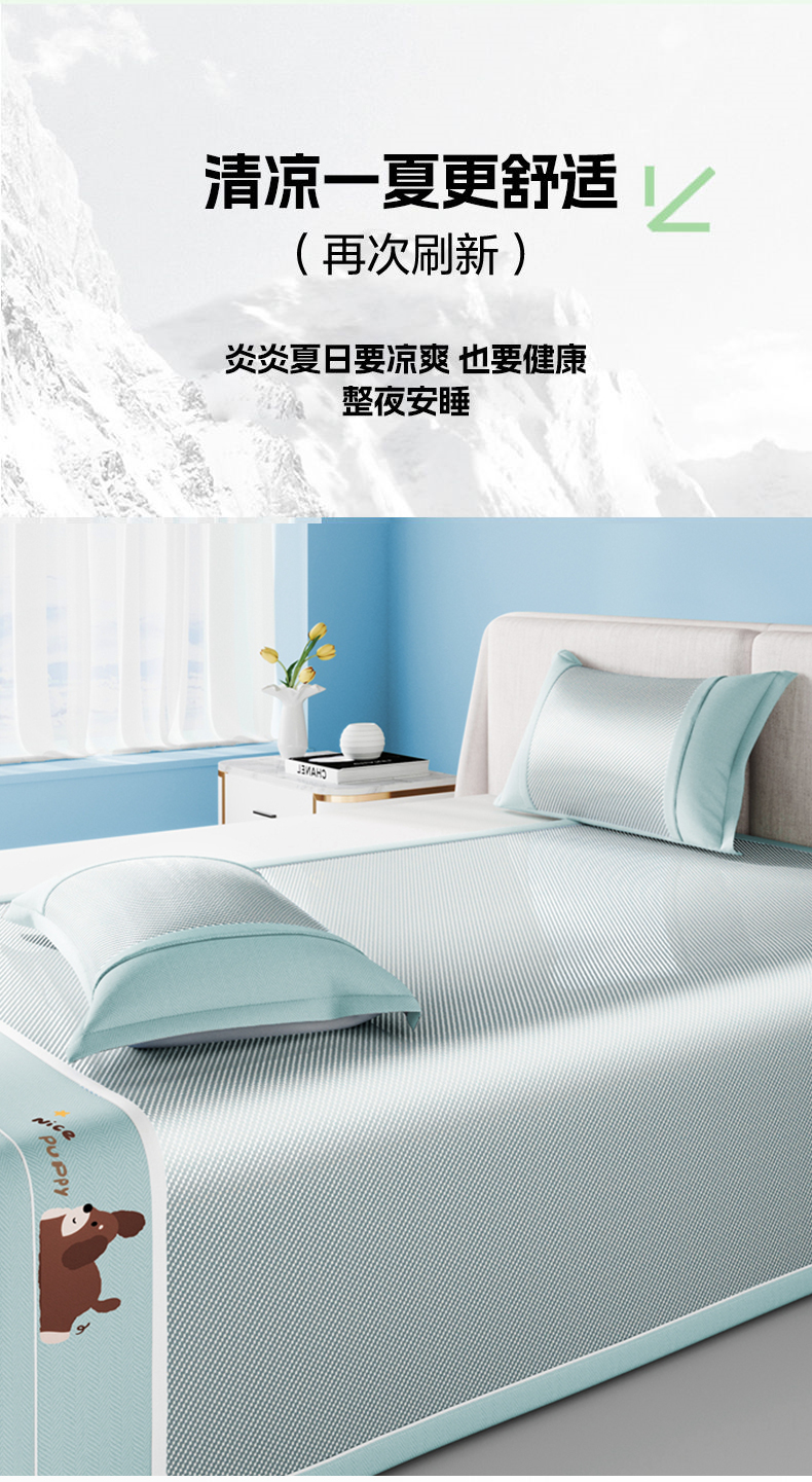 商品名称:川悦生活 2025新款纯色凉感冰丝席-小床 帕帕狗仔-蓝灰