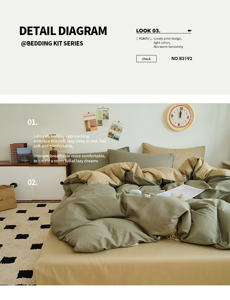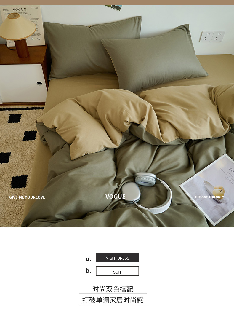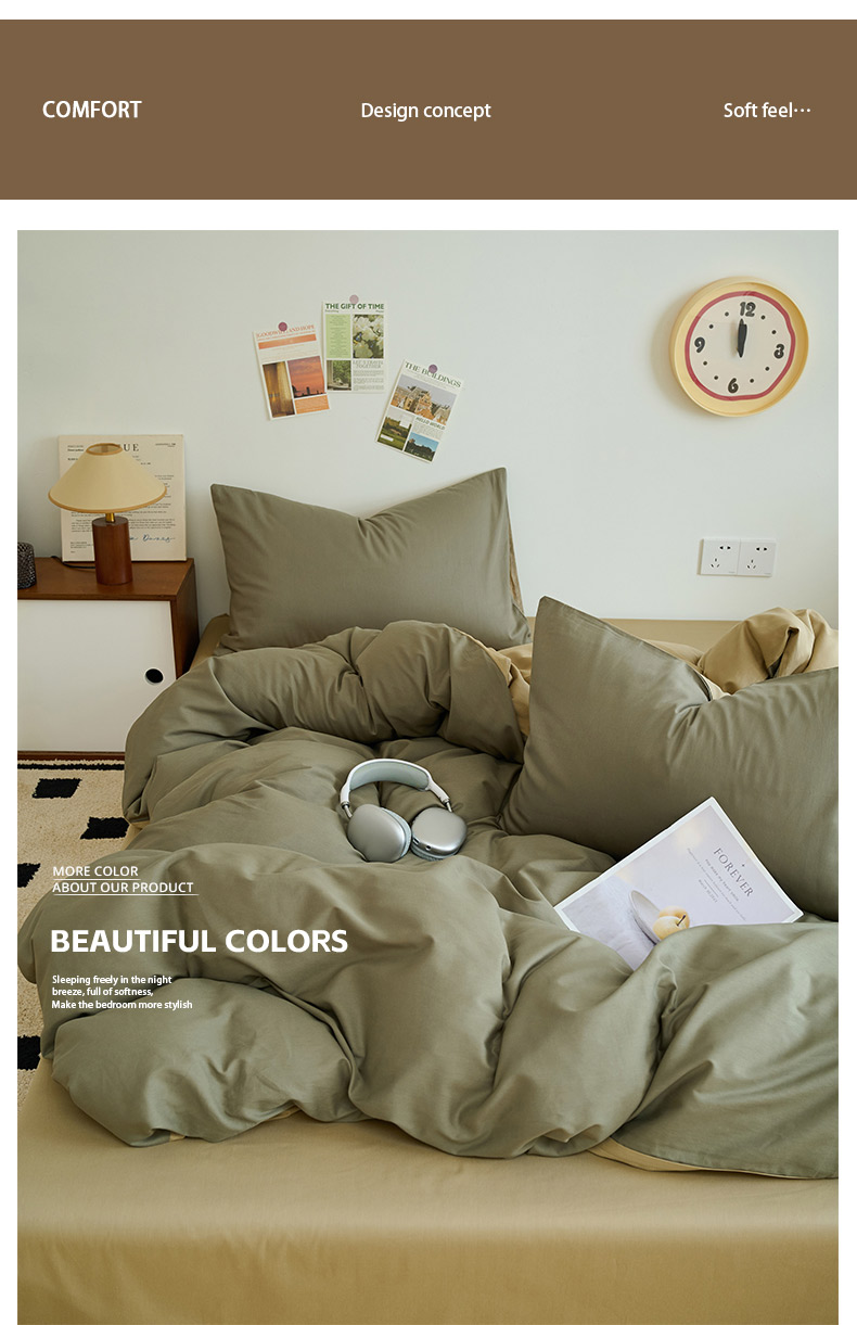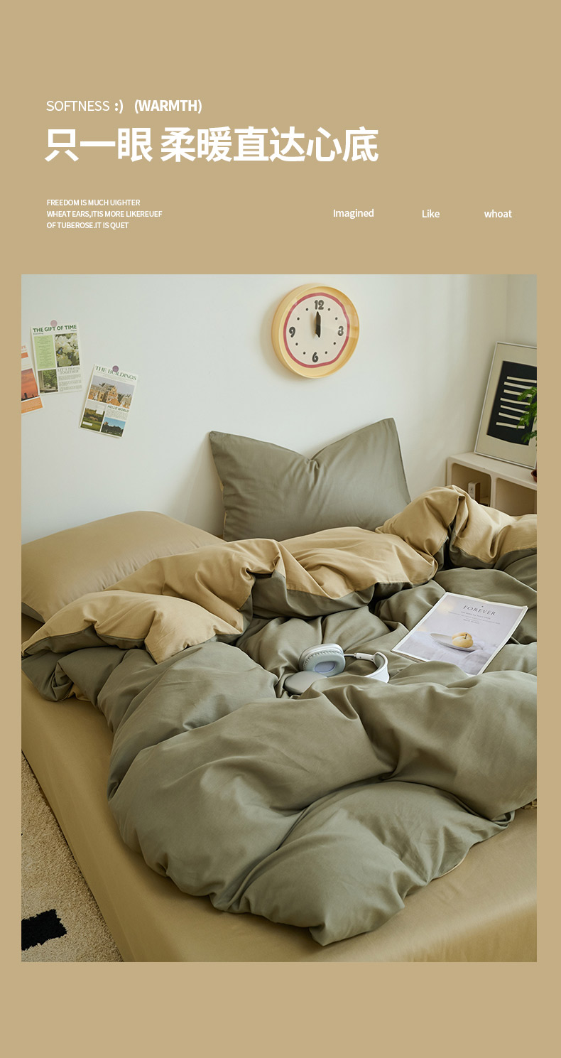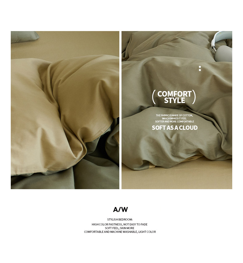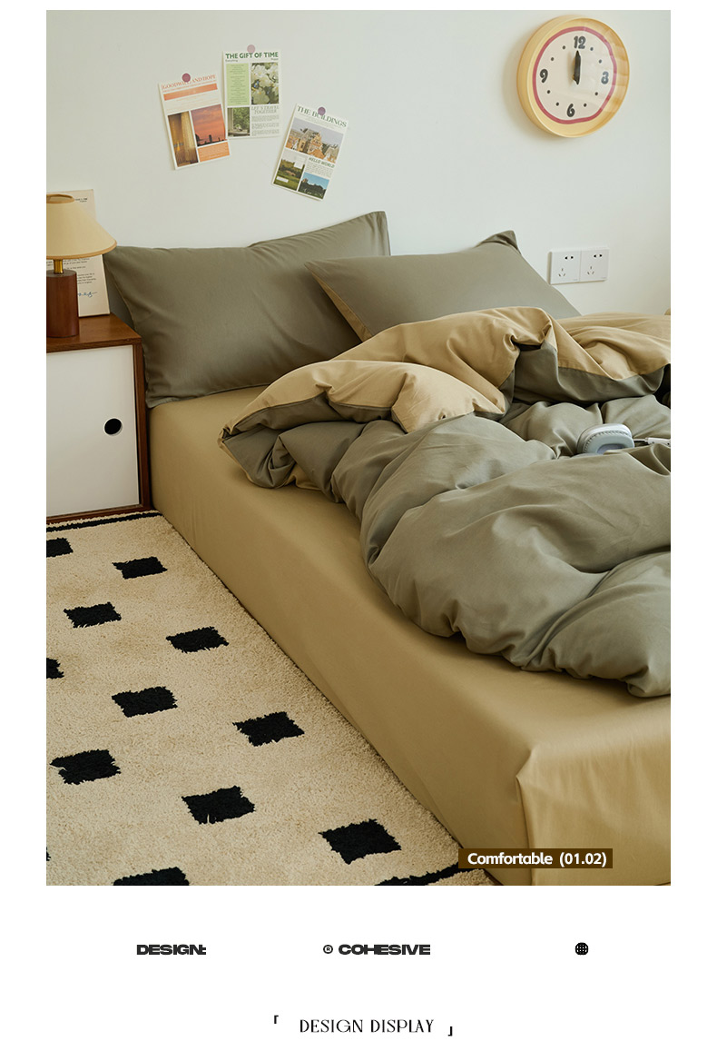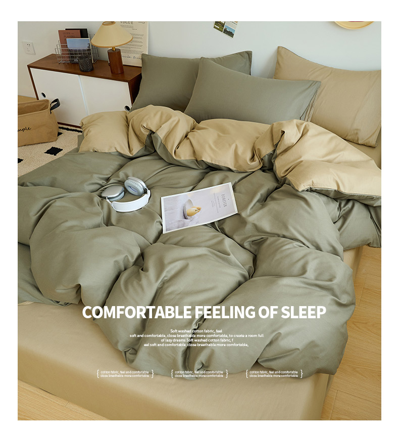 商品名称:鑫琪莱家纺 2025双拼色水洗棉四件套浅灰浅咖