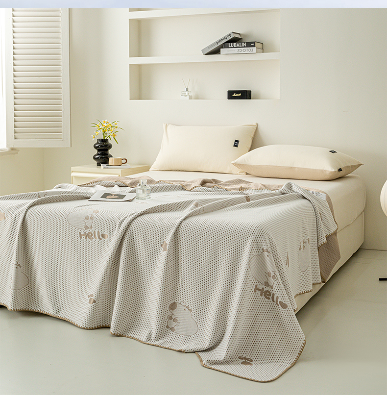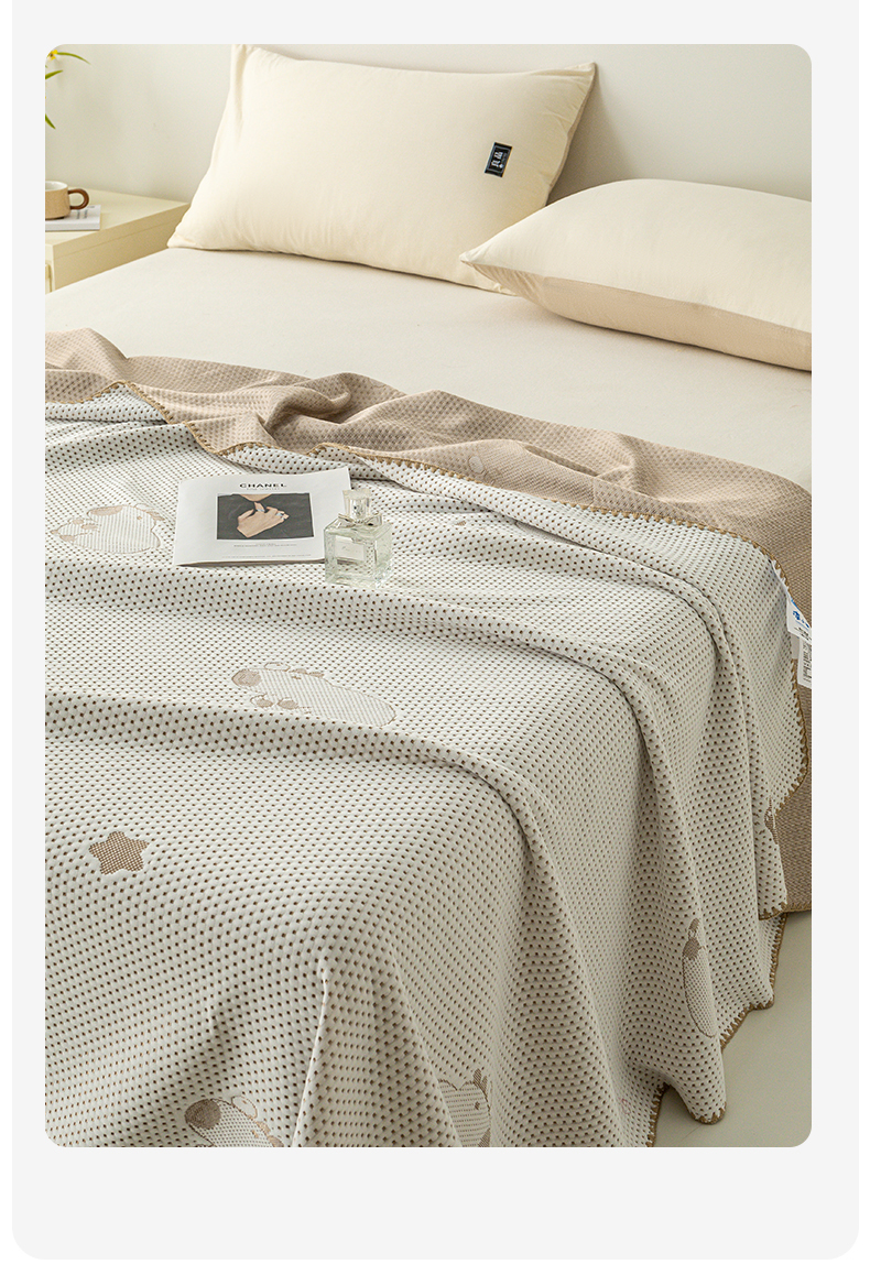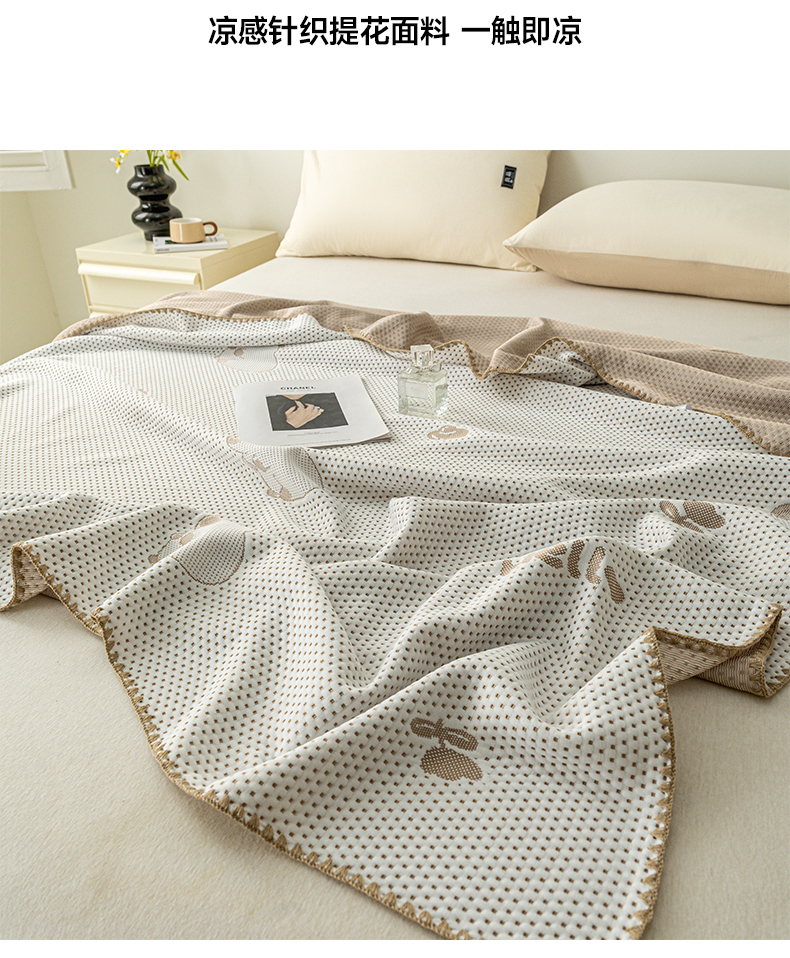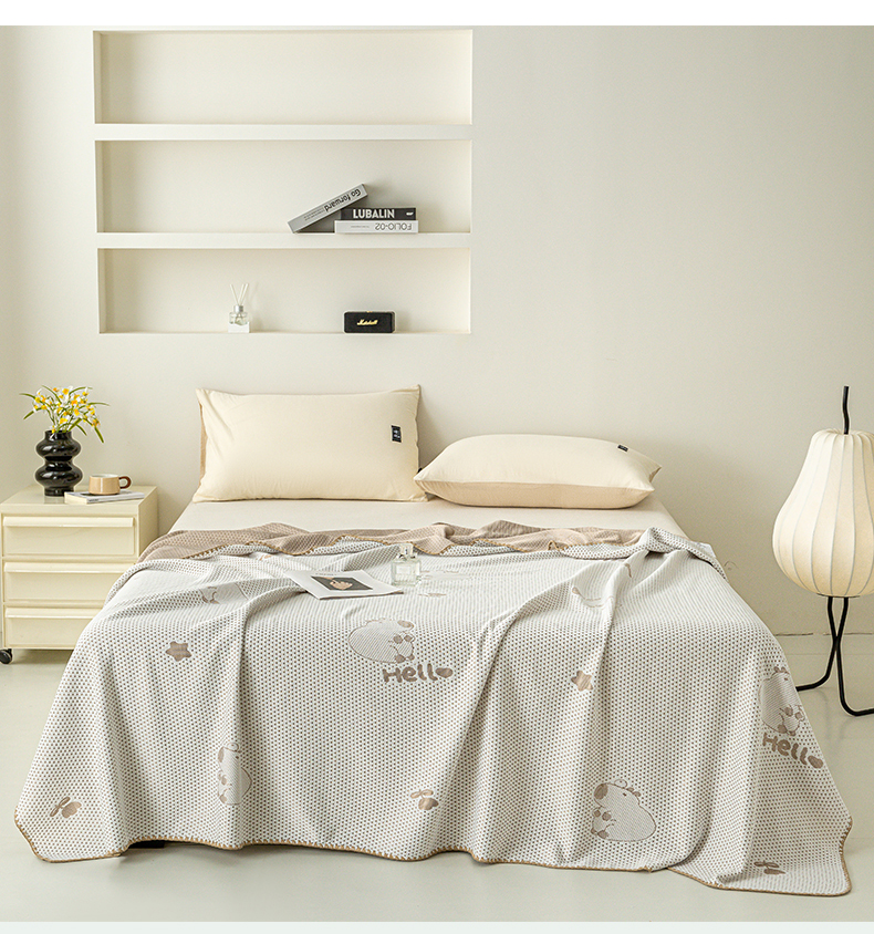 商品名称:梦尚舒 2025新款直播热款凉感针织提花盖毯子夏被贝壳边空调被 卡皮巴拉-咖