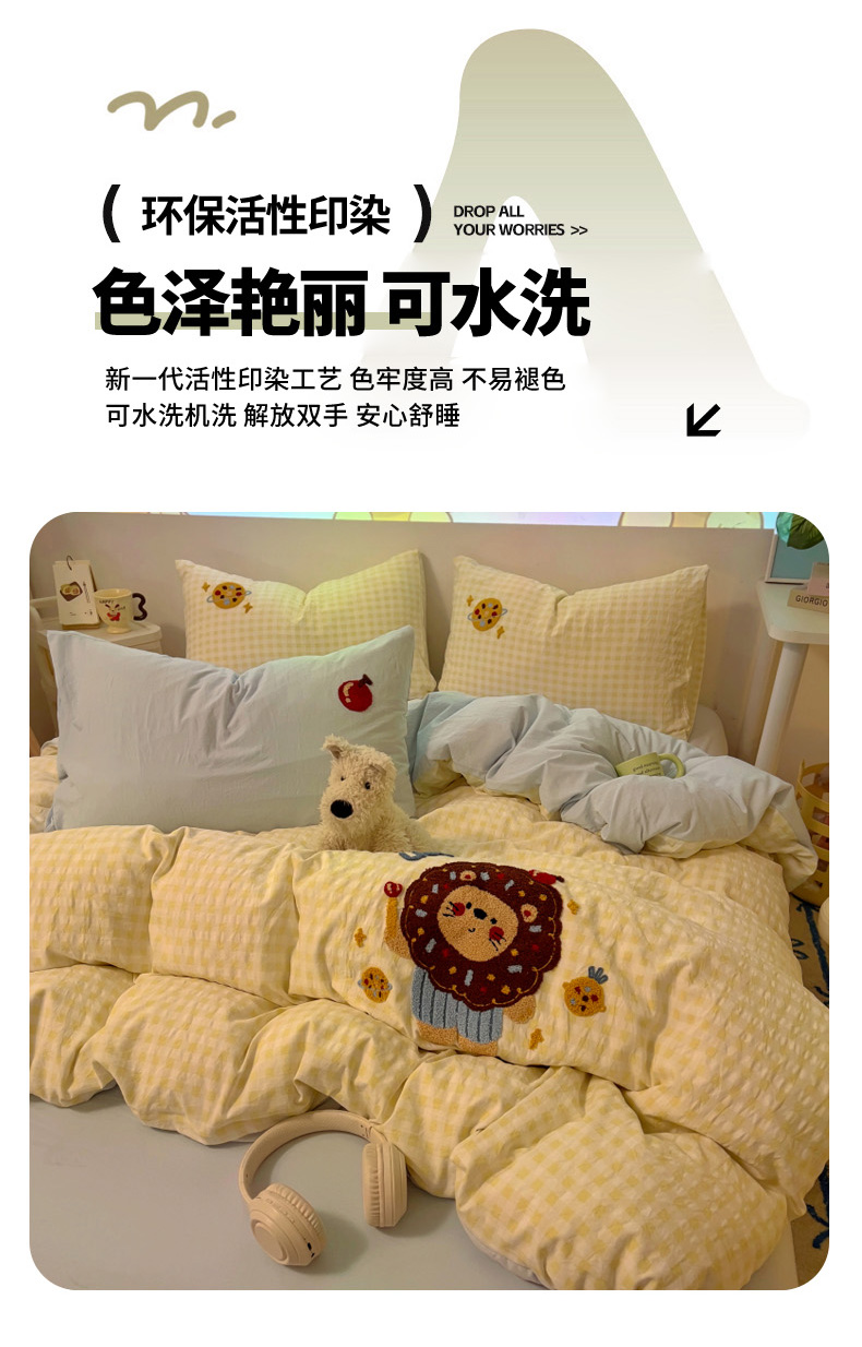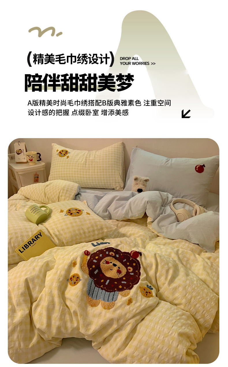 当前位置: 91家纺网 > 商品网购 > 床品套件 > 四件套 > 全棉普通四件套 > 2025新款专版高克重超萌卡通格子双拼毛巾绣软糯糯水洗棉四件套(场景二) 腊肠狗狗