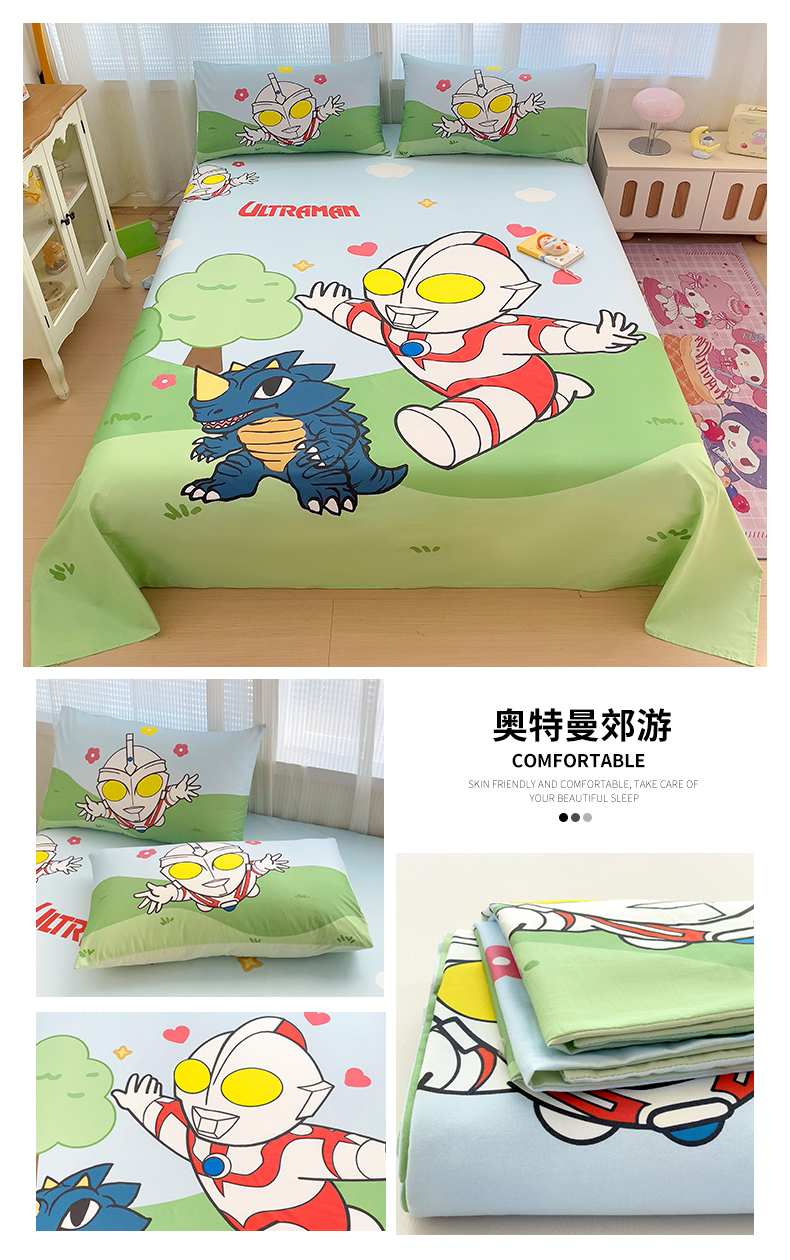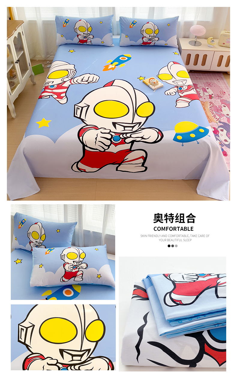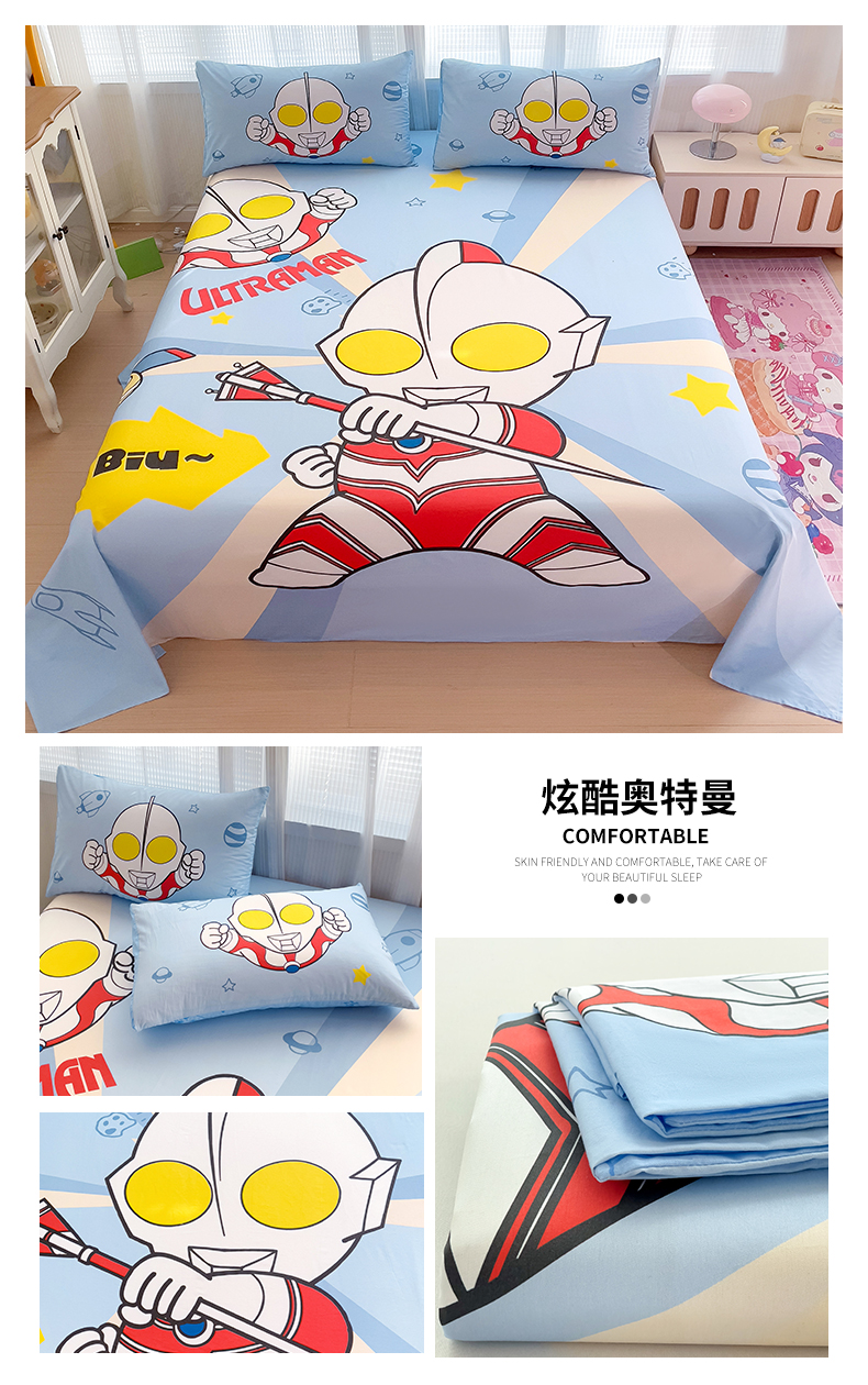 商品名称:(总)名兮2025新款大版经典奥特曼三丽鸥三件套全棉纯棉床单