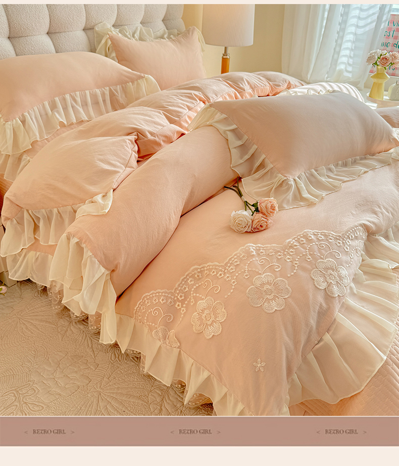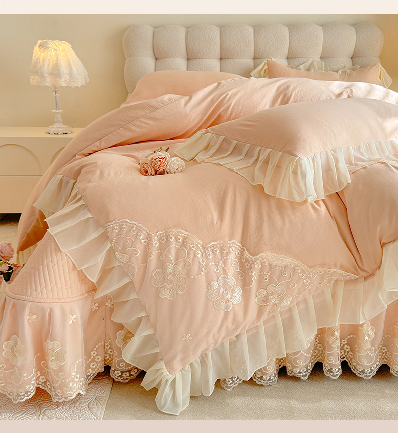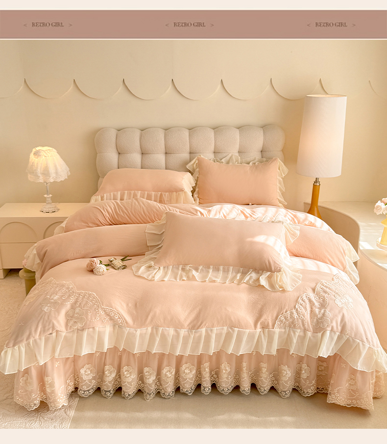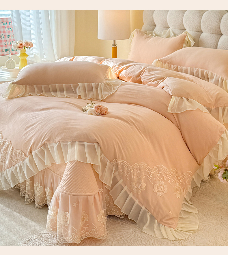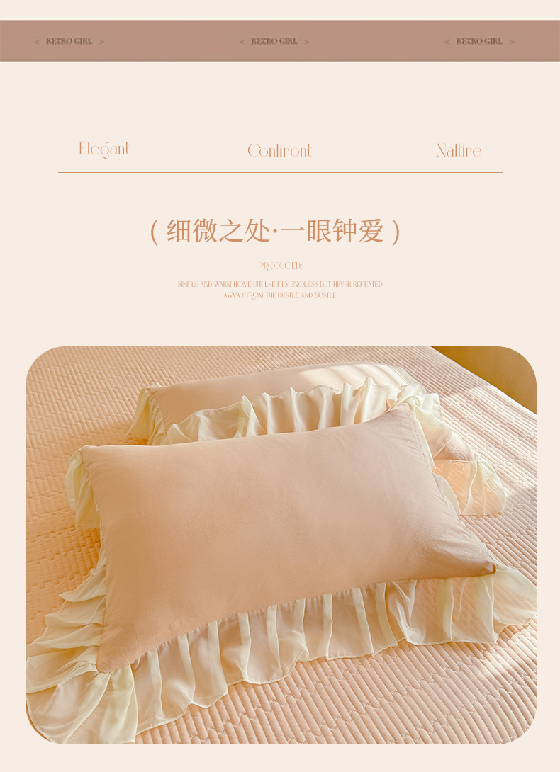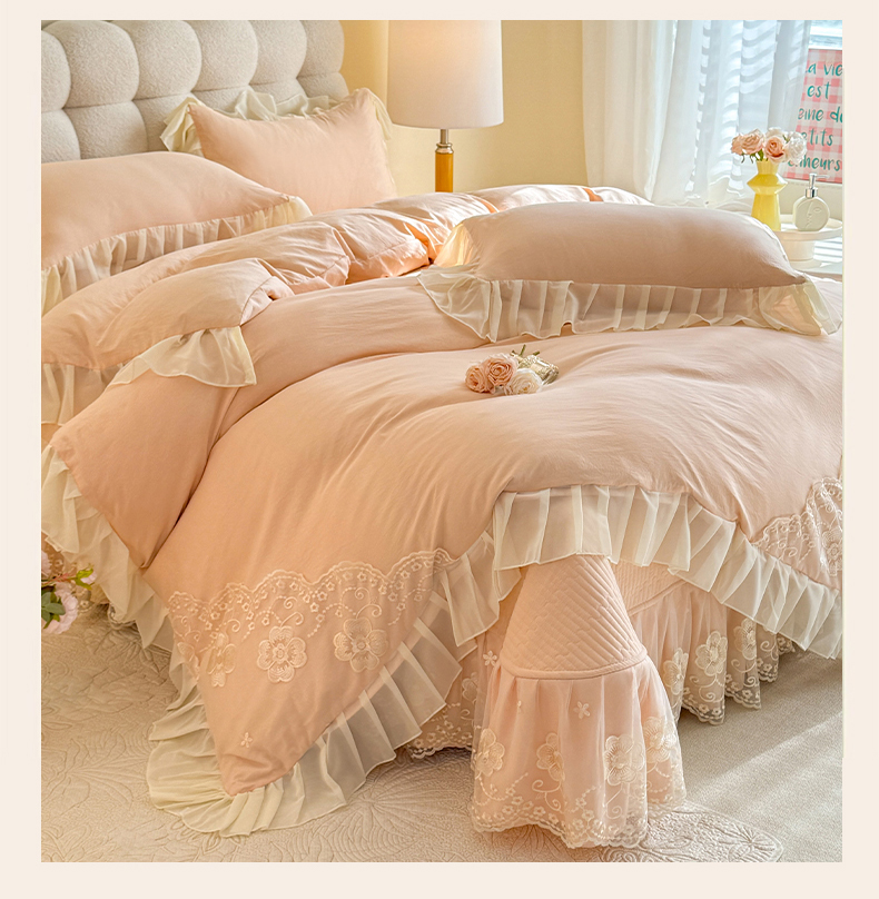 商品名称:迪梦姿家纺 2025新款简约纯色高密水洗棉花边床盖四件套-爱丽莎 爱丽莎-香玉