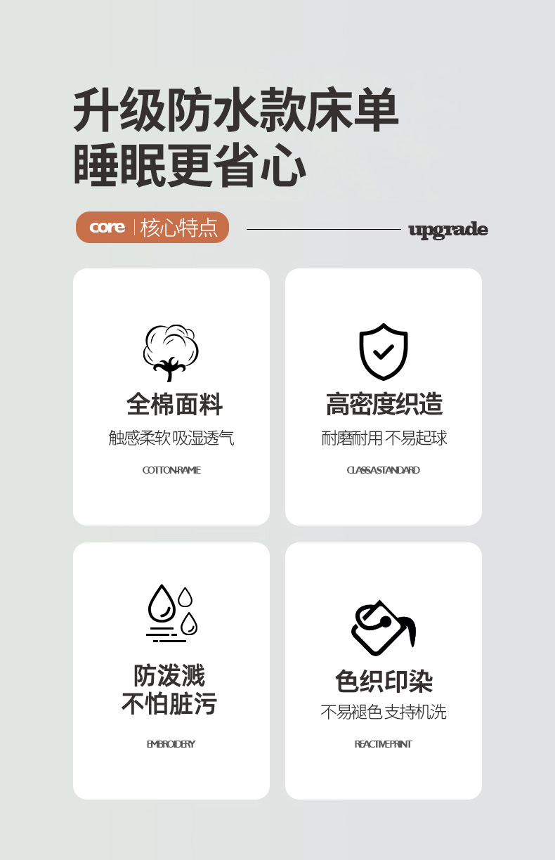 商品名称:久云居 2025新款亲肤舒适全棉色织防水床单 卡其