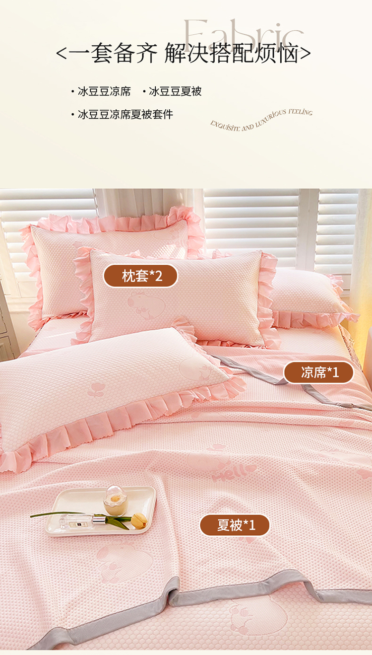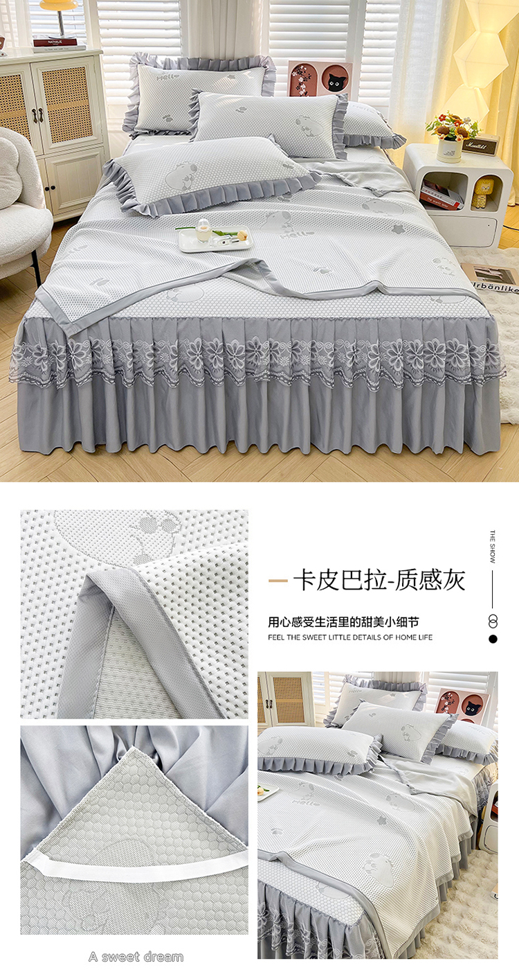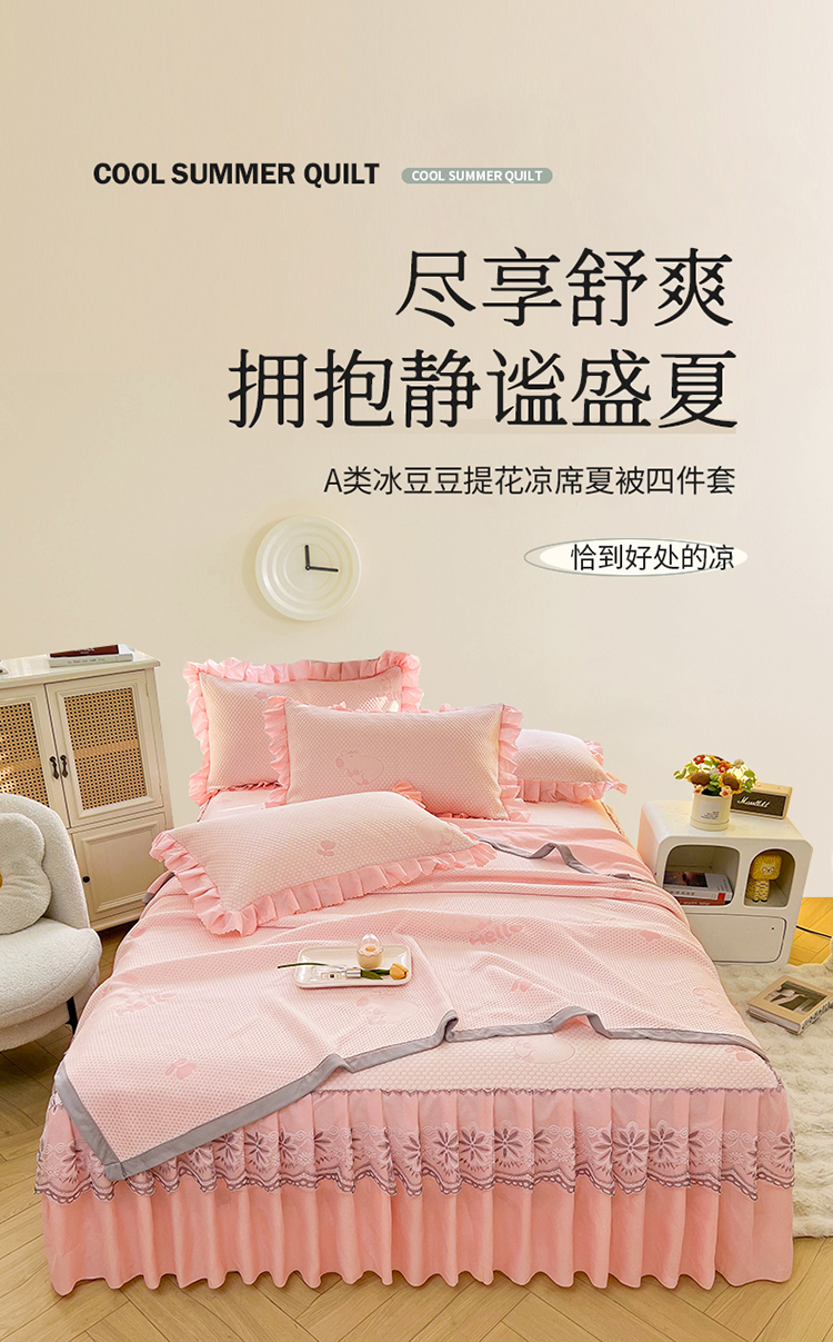 (总)2025新款A类冰豆豆提花凉席床盖 床裙款