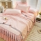 (总)艾裙海 2025跨境外贸新款纯色乐卡棉90克细丝磨毛蕾丝边床裙,宝蓝色,藏青色,卡其色,米白色,灰色,大红色,粉红色,紫色