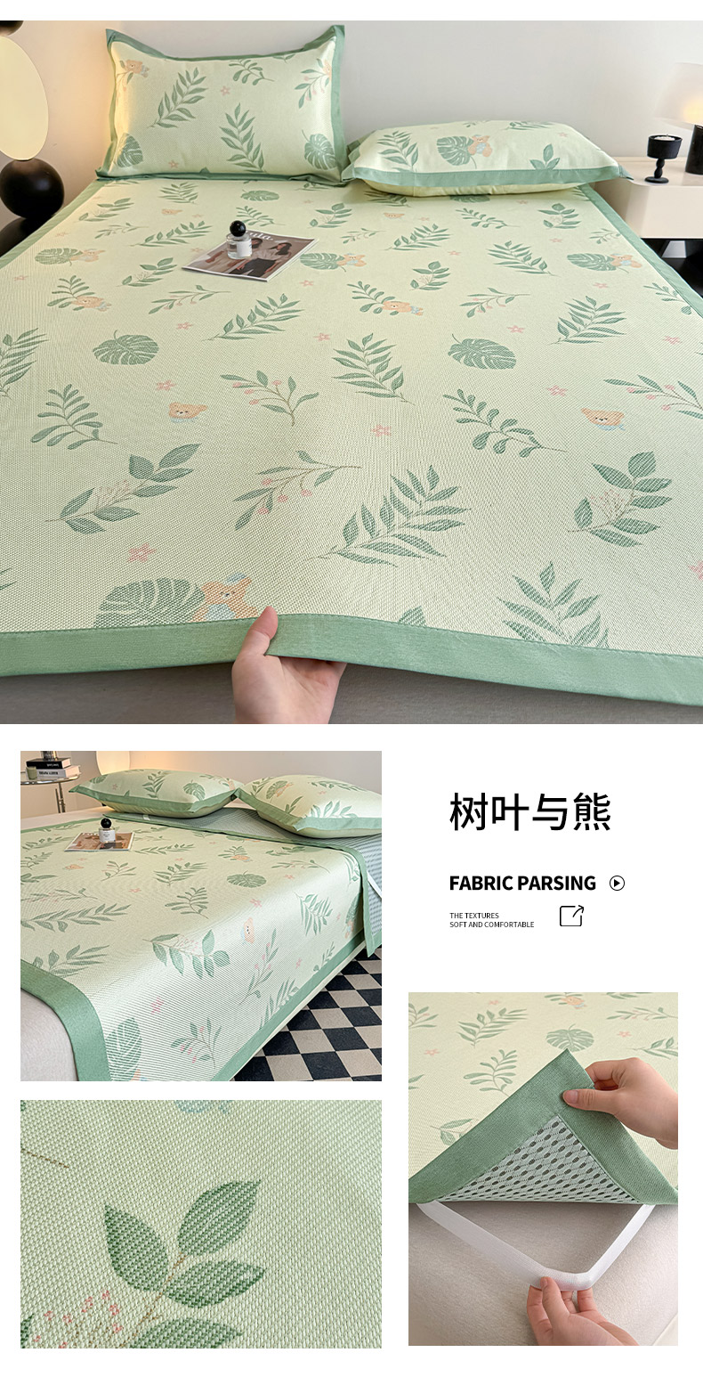 商品名称:格真2025新款简约印花冰藤席席子凉席 树叶与熊