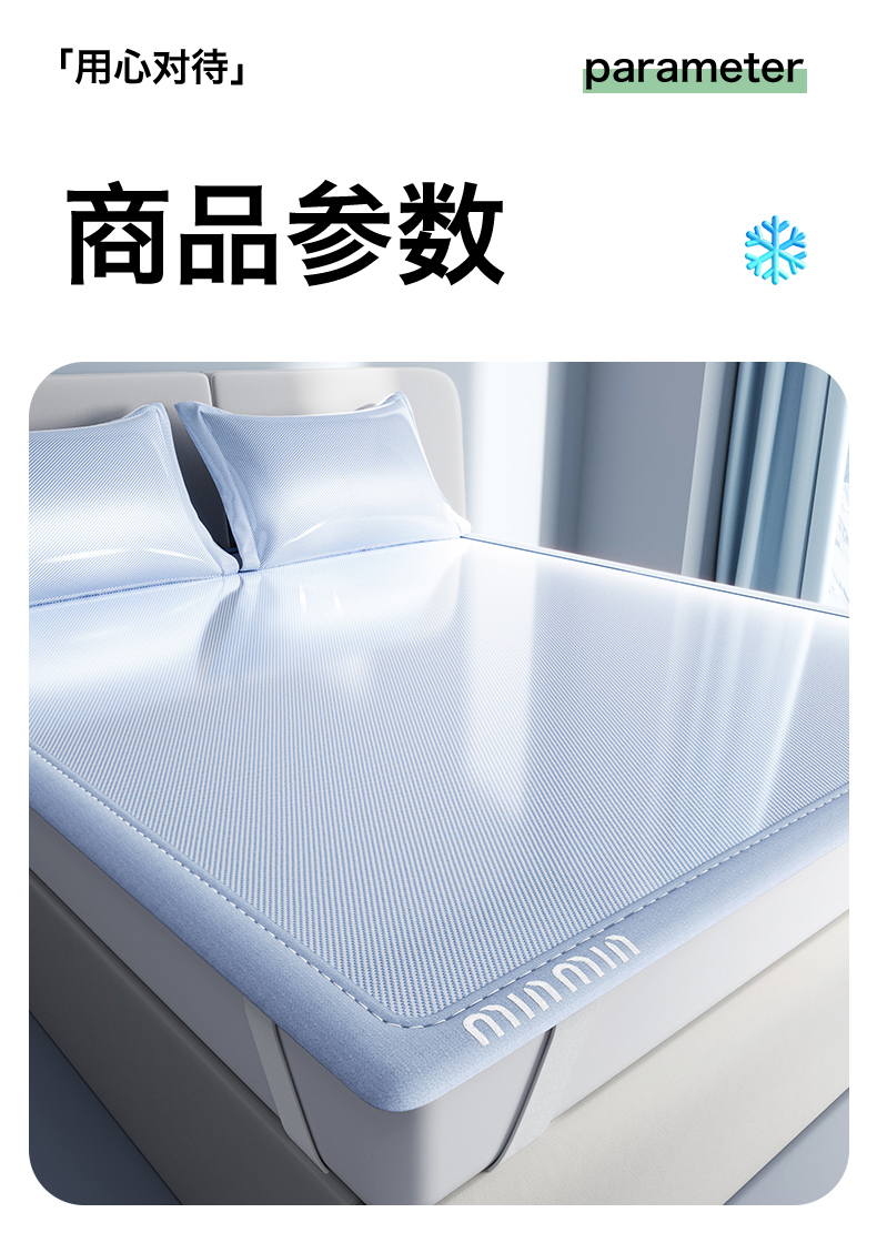 商品名称:星座家纺 2025新款斜纹冰丝凉席三件套-绣花款 宁静蓝