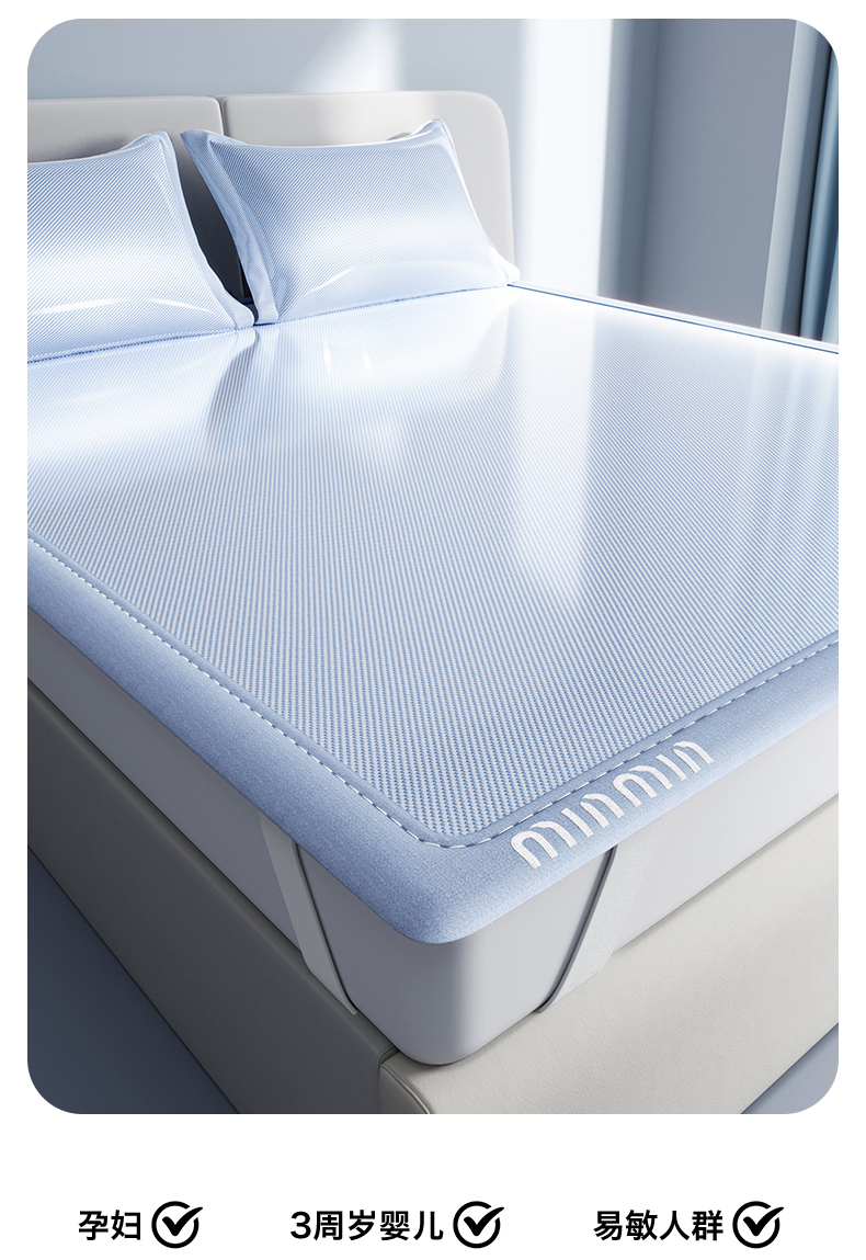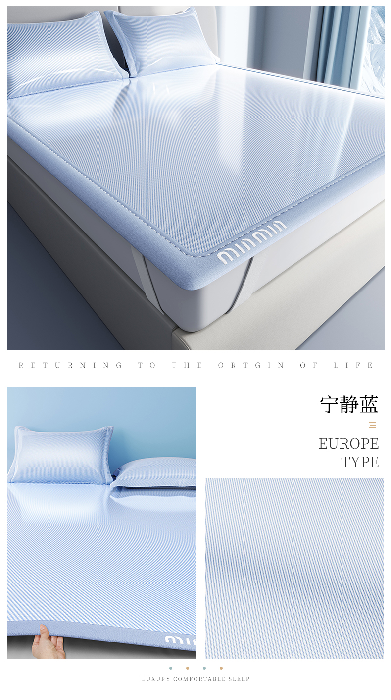 星座家纺 2025新款斜纹冰丝凉席三件套-绣花款 宁静蓝
