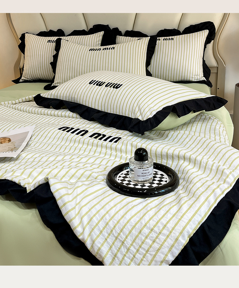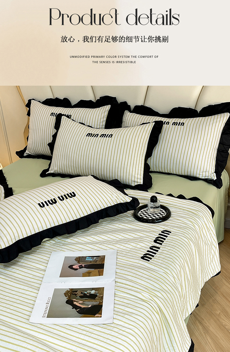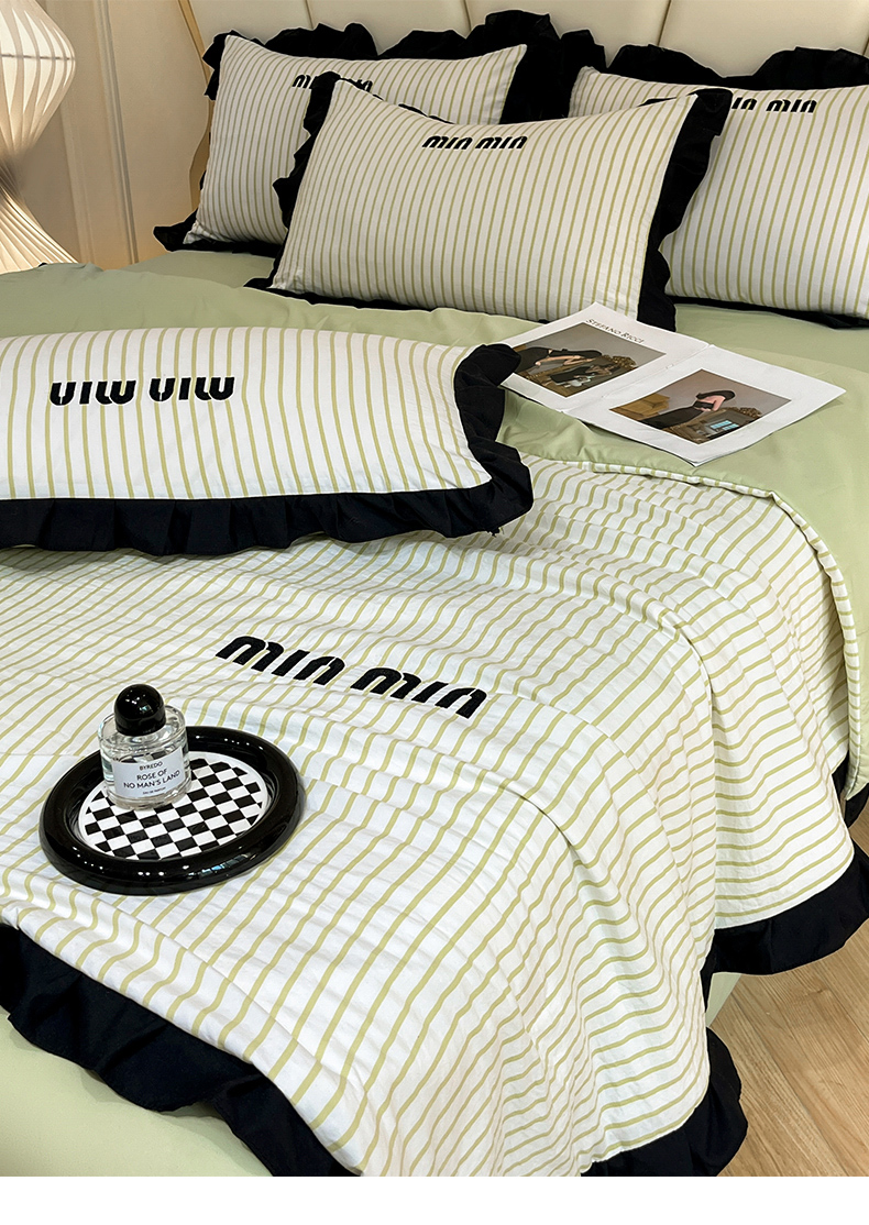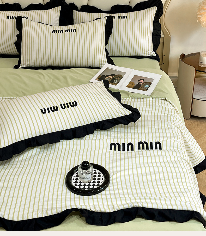 当前位置: 91家纺网 > 商品网购 > 被子 > 夏被 > 千希家纺 2025新款110克超柔水洗棉刺绣花边夏被夏凉被空调被四件套 小香风 青草绿