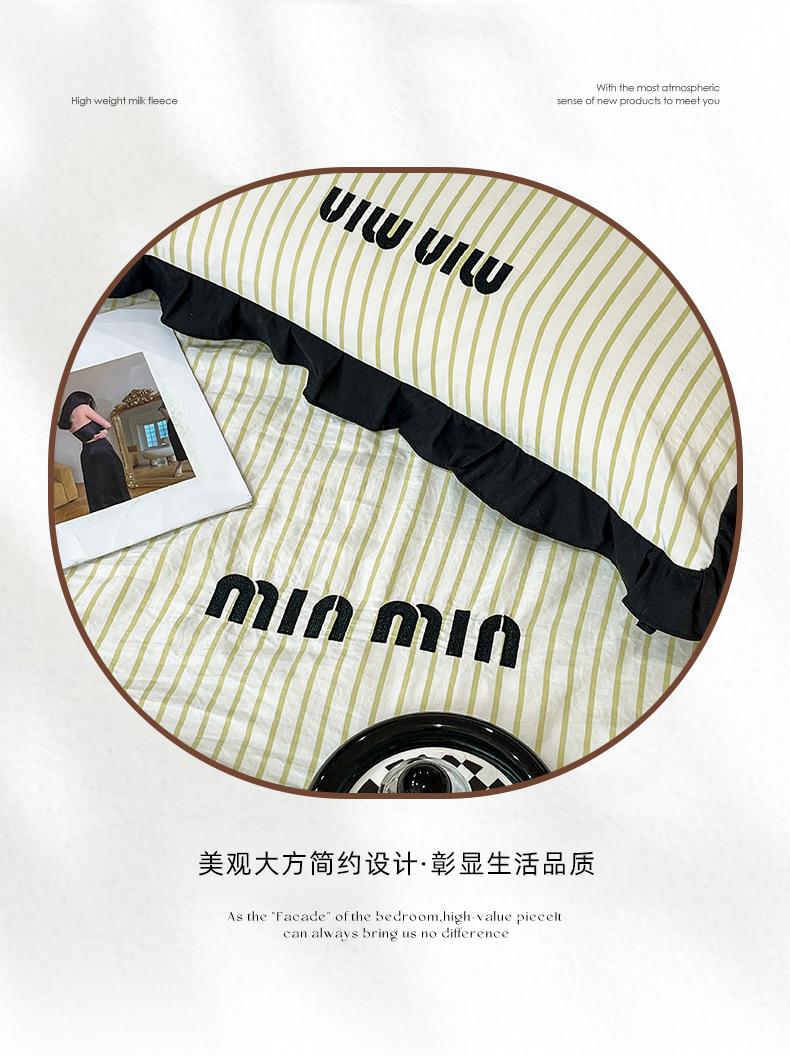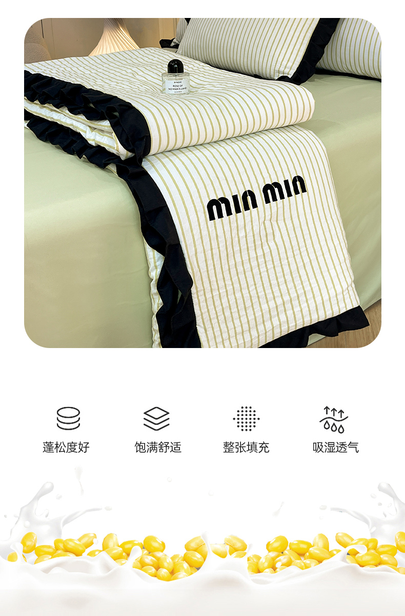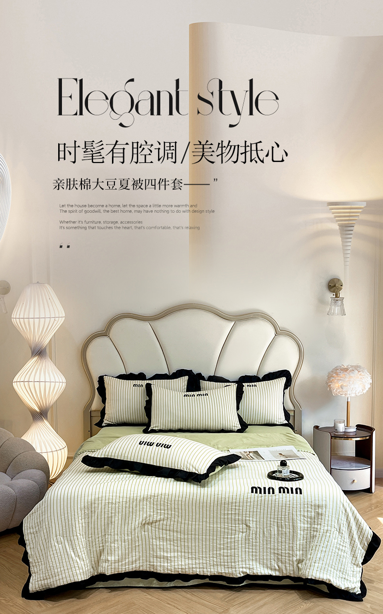 • 91家纺网 家纺一手货源 找家纺 千希家纺 2025新款110克超柔水洗棉刺绣花边夏被夏凉被空调被四件套 小香风  青草绿