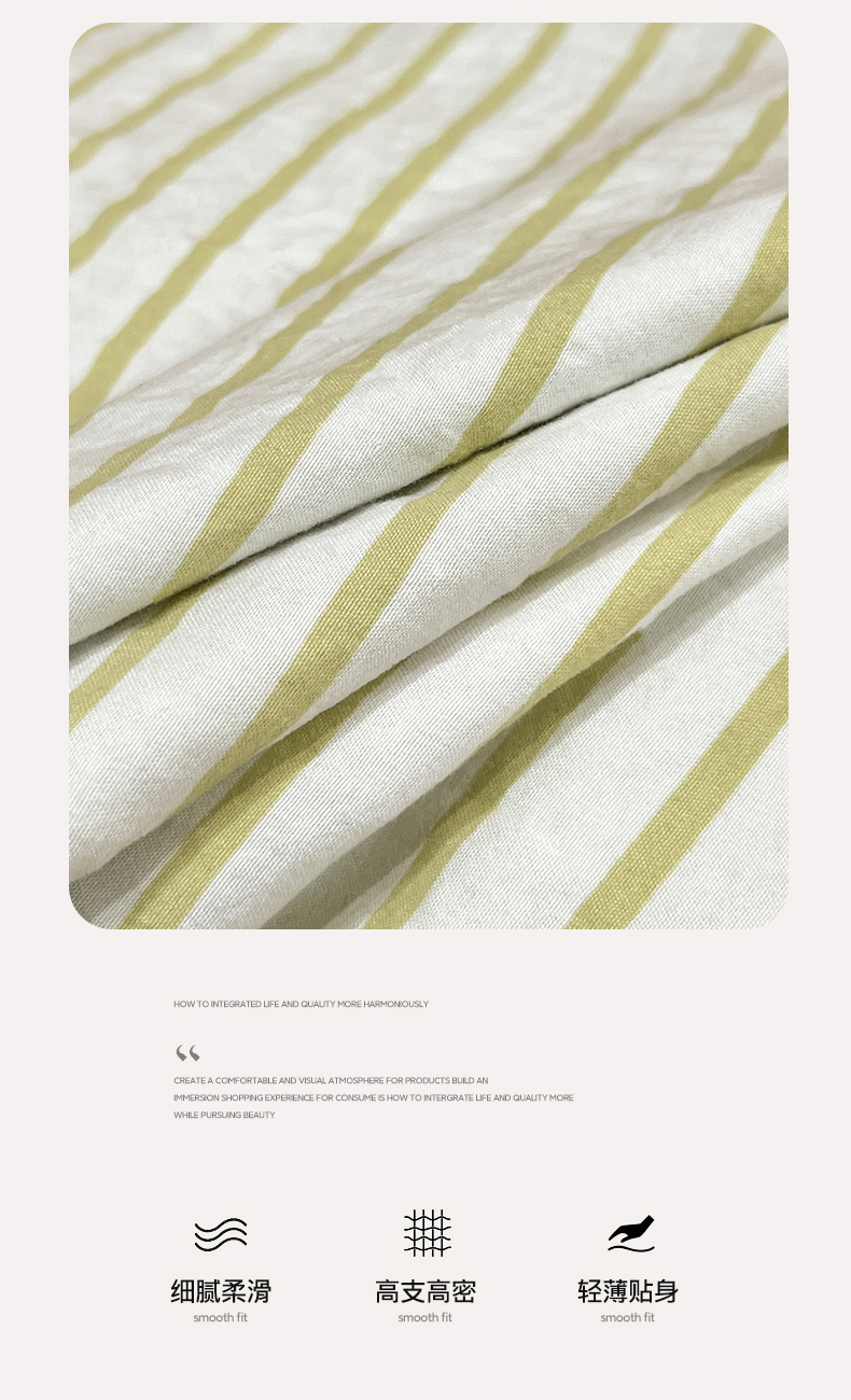 (总)千希家纺 2025新款色织提花条纹泡泡纱四件套-莫奈庄园,莫奈庄园
