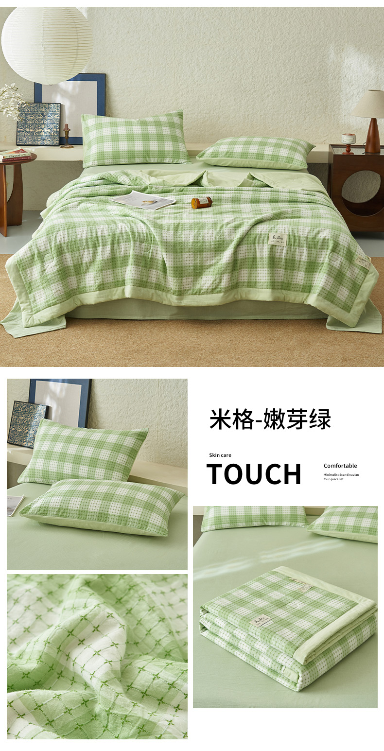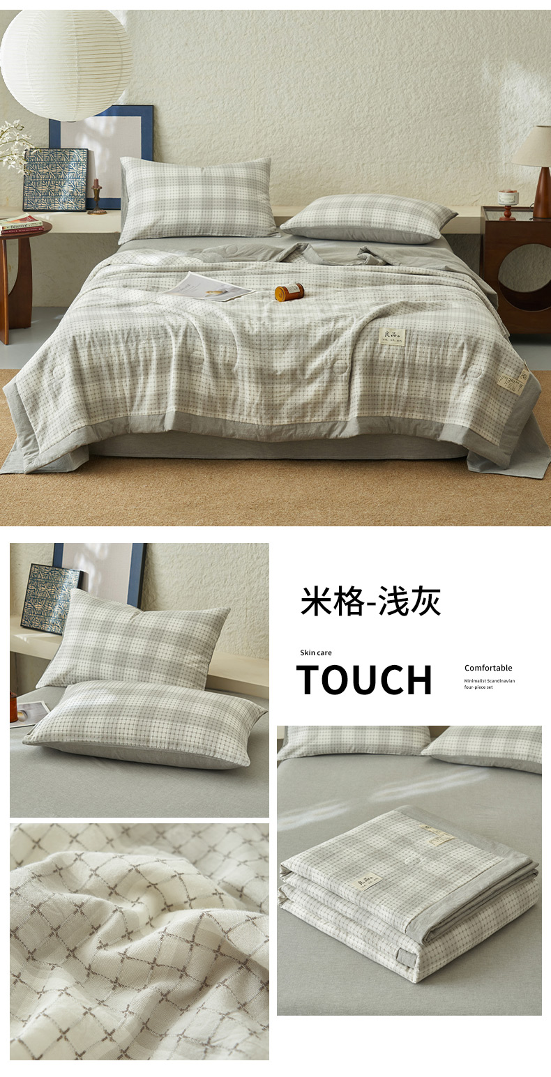 商品名称:(总)简如 2025新款A类全棉提花大豆夏被四件套-米格