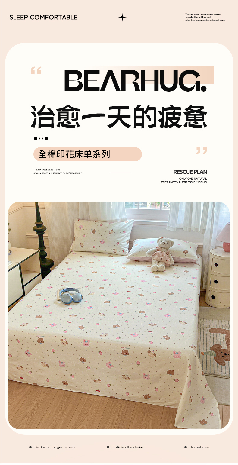 商品名称:Sweet dreams甜梦 2025新款全棉纯棉小清新印花床单单品单床单床单单件 动物派对