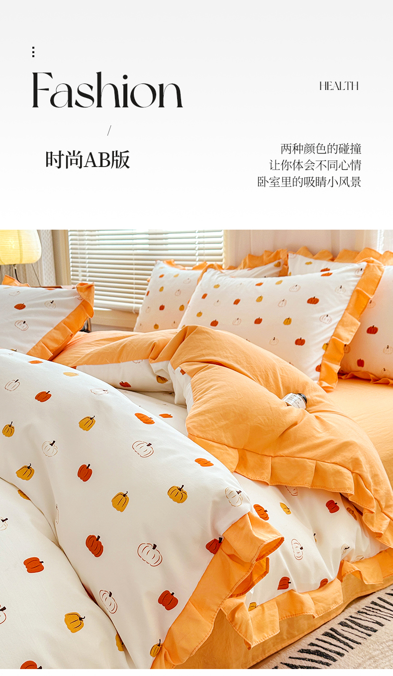 佳一家纺 2025新款亲肤水洗棉四件套系列 小南瓜